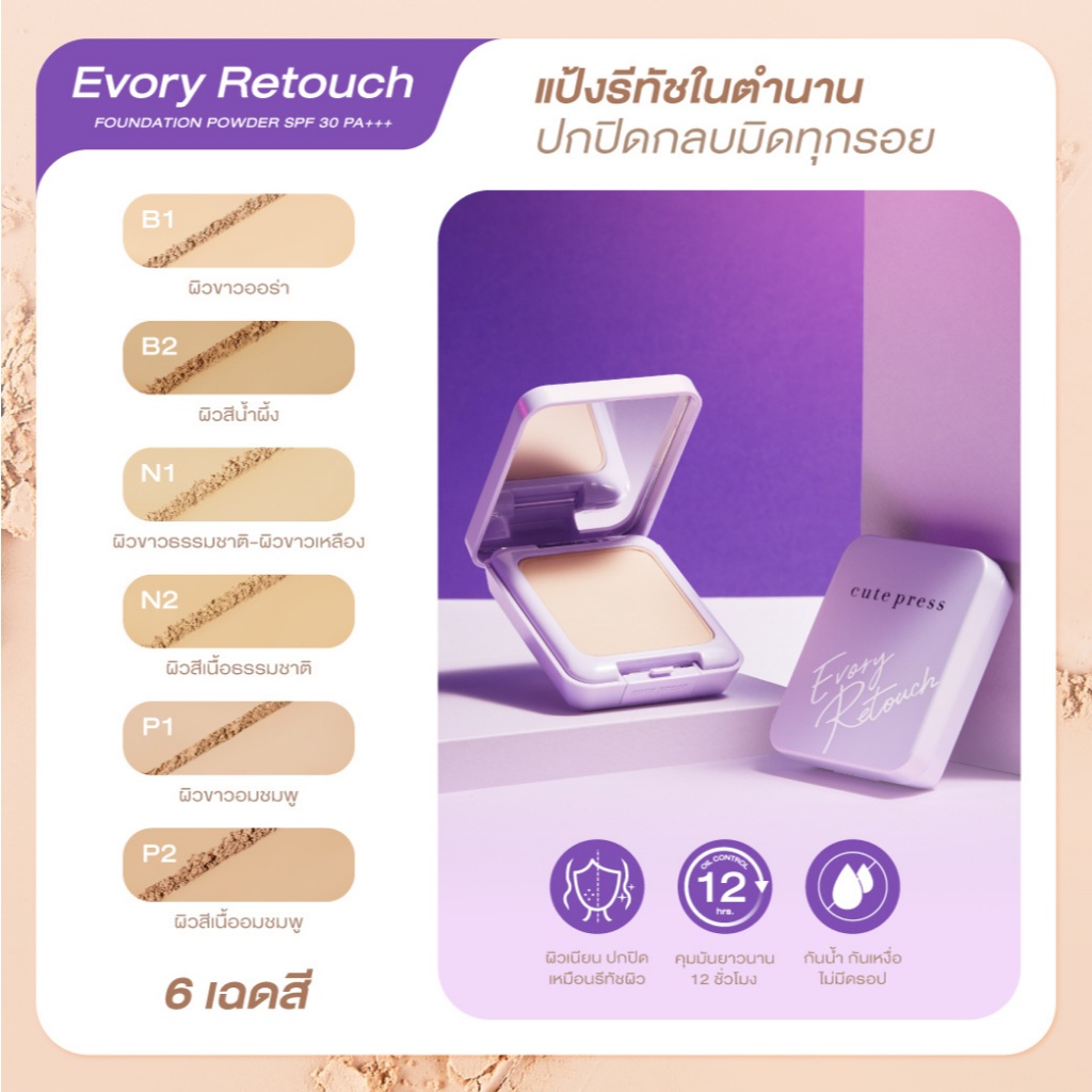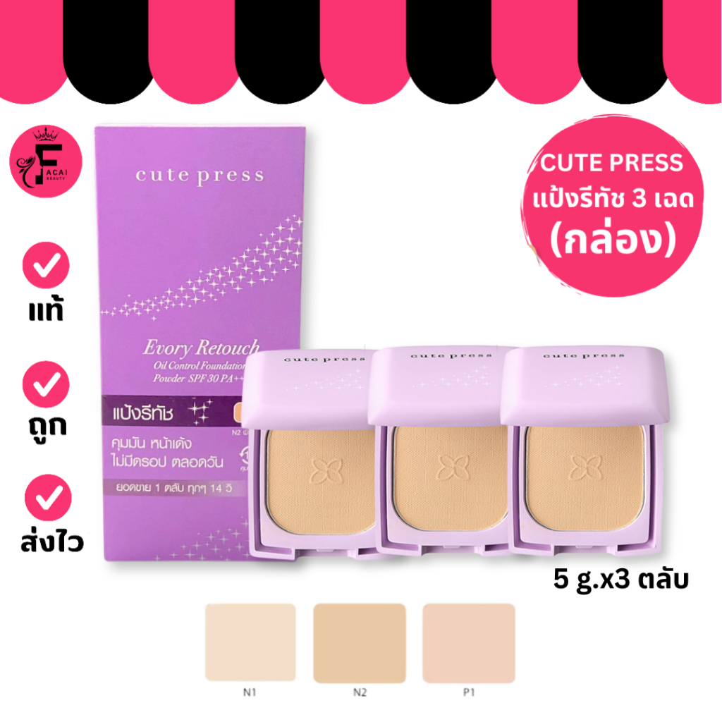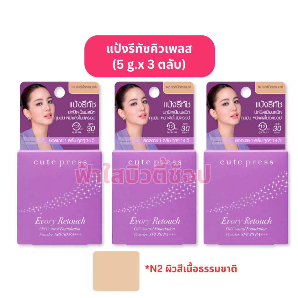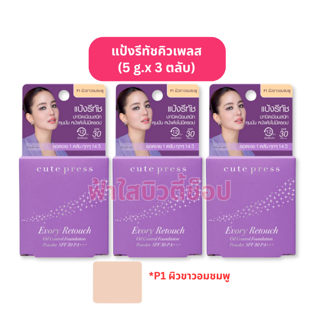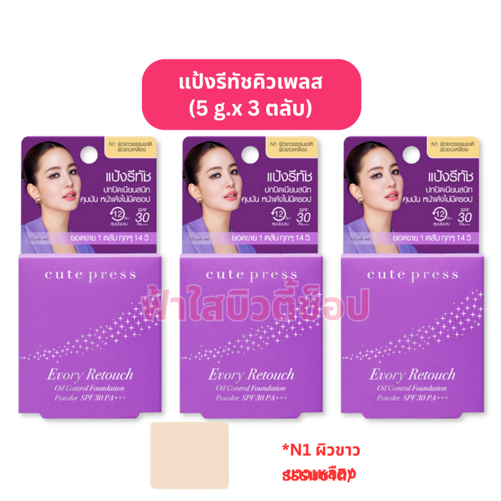 (กล่อง 3 ตลับ) cute press แป้งรีทัช ตลับม่วง SPF 30 PA+++ กันน้ำ กันเหงื่อ ไซส์มินิ (ขนาดพกพา 5 g.)