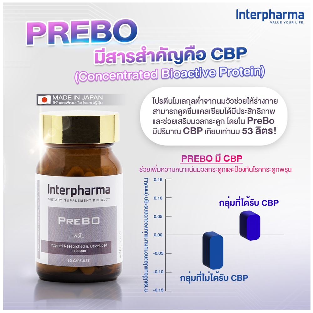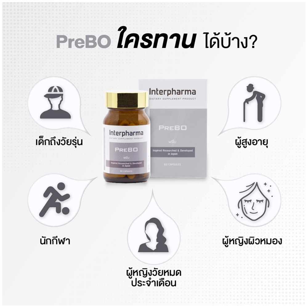 Interpharma PreBO 60 capsules - ผลิตภัณฑ์เสริมอาหาร ช่วยเสริมสร้างมวลกระดูก ป้องกันโรคกระดูกพรุน