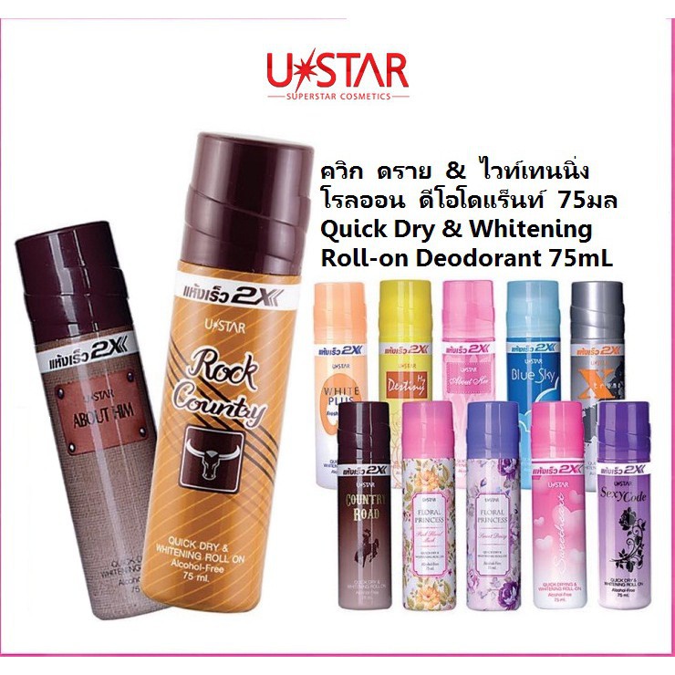 Ustar ยูสตาร์ ลูกกลิ้ง ควิก ดราย ไวท์เทนนิ่ง โรลออน Quick Dry & Whitening Roll On 75 มล.