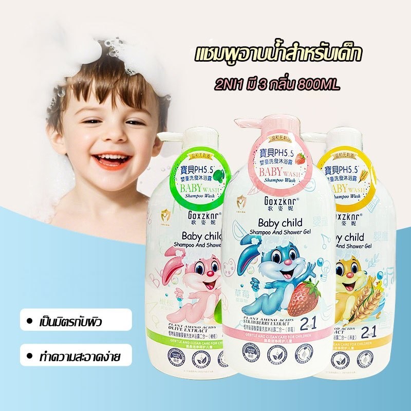 แชมพู ครีมอาบน้ำ เด็ก 800ml 2อิน1 เจลอาบน้ำกลิ่น ตัวหอม สบู่น้ำหอม หอม หอมติดทนนาน ความปลอดภัย Baby Shampoo Body Wash