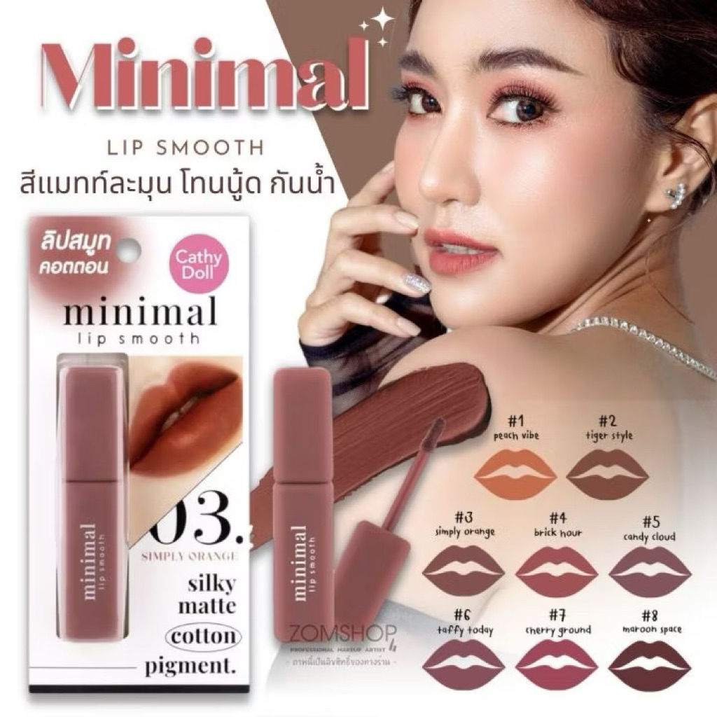 เคที่ดอลล์ มินิมอล ลิป สมูท ลิปสติก เนื้อคอตตอน สีแมทท์ละมุน Cathy Doll minimal lip smooth 2.7g