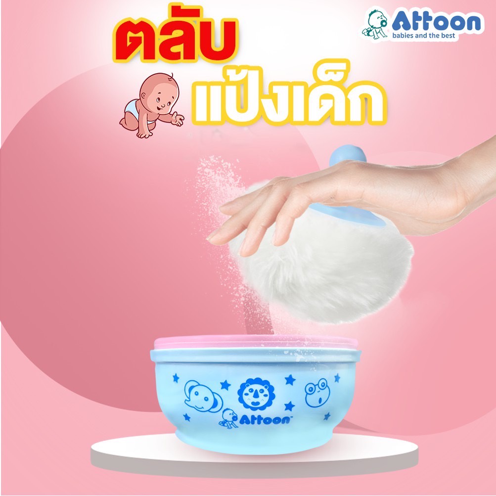 ATTOON CENTER ตลับแป้งเด็ก กล่องใส่แป้ง พร้อม ที่ปัดแป้ง ขนกำมะหยี่ (คละสี) แปรงขนนุ่ม กระปุกแป้ง มีฝาปิด
