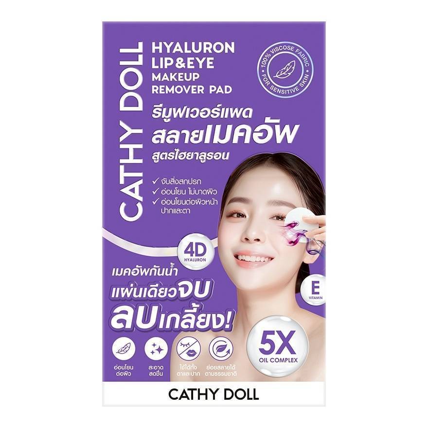 (1ห่อ) เคที่ดอลล์ ไฮยาลูรอน ลิปแอนด์อาย เมคอัพรีมูฟเวอร์แพด 25แผ่น CATHY DOLL FACE Hyaluron Lip and Eye