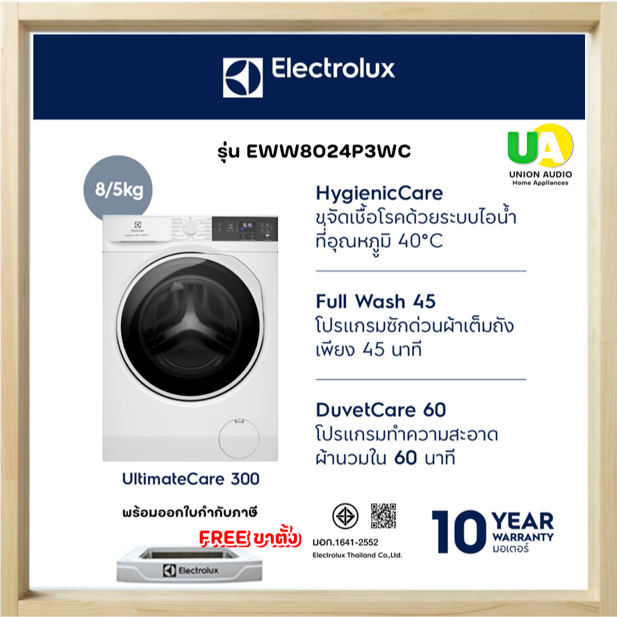 Electrolux เครื่องซักอบผ้า EWW8024P3WC ฟรีขาตั้ง เครื่องซักอบผ้าฝาหน้า ซัก 8 กก. อบ 5 กก. EWW8024