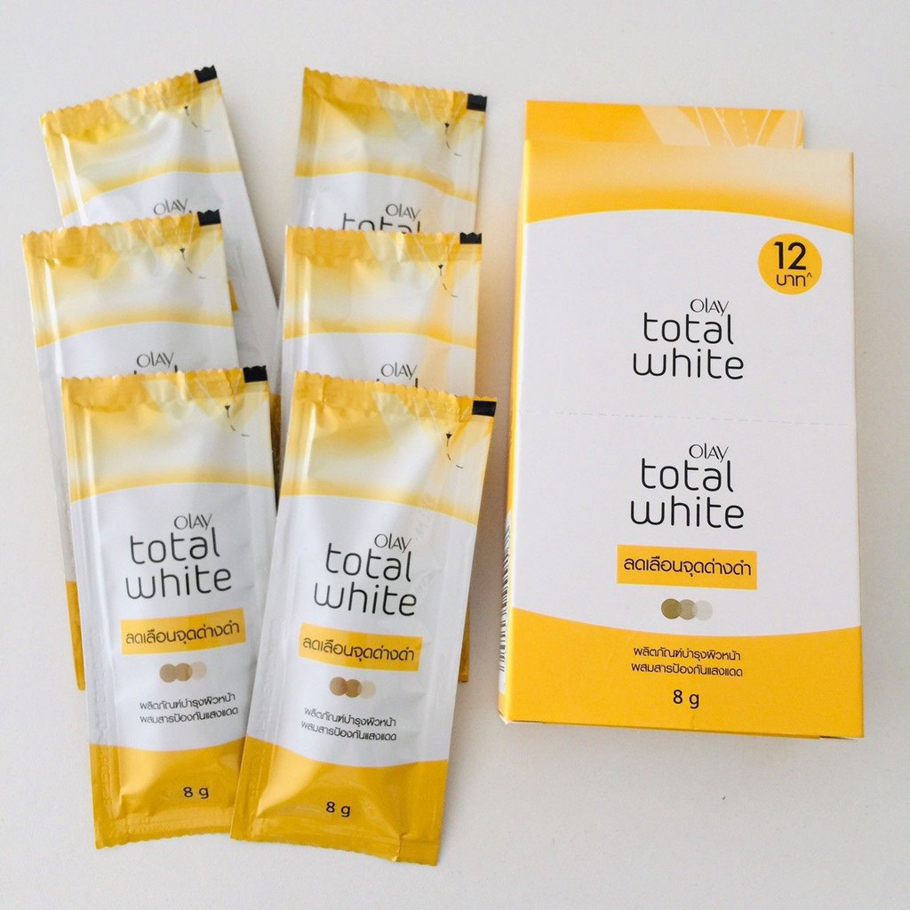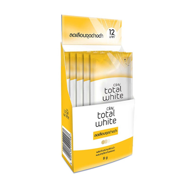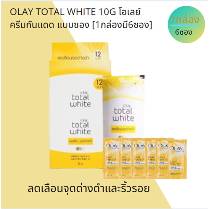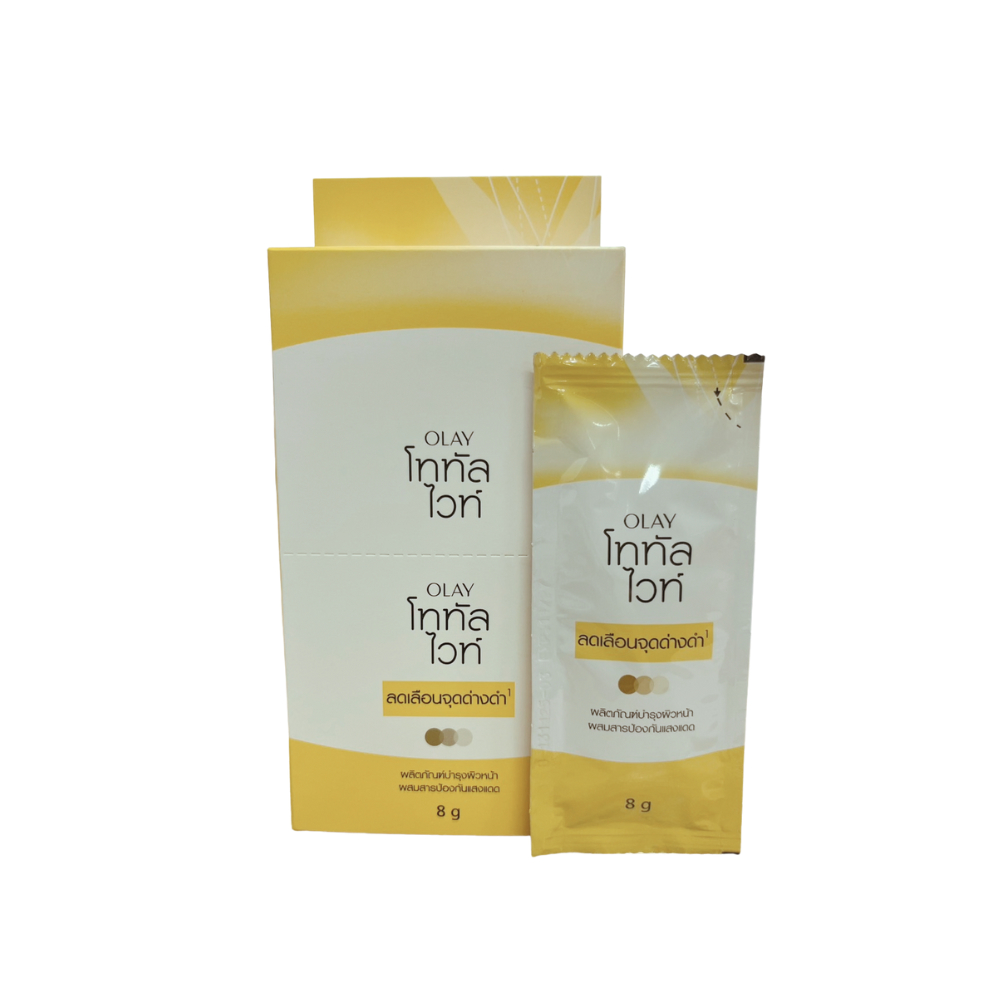 OLAY โอเลย์ โททัล ไวท์ ครีม ครีมกันแดด 8 กรัม แบบซองฉีก/ฝาหมุน [1กล่องมี6ซอง] ลดเลือนจุดด่างดำและริ้วรอย