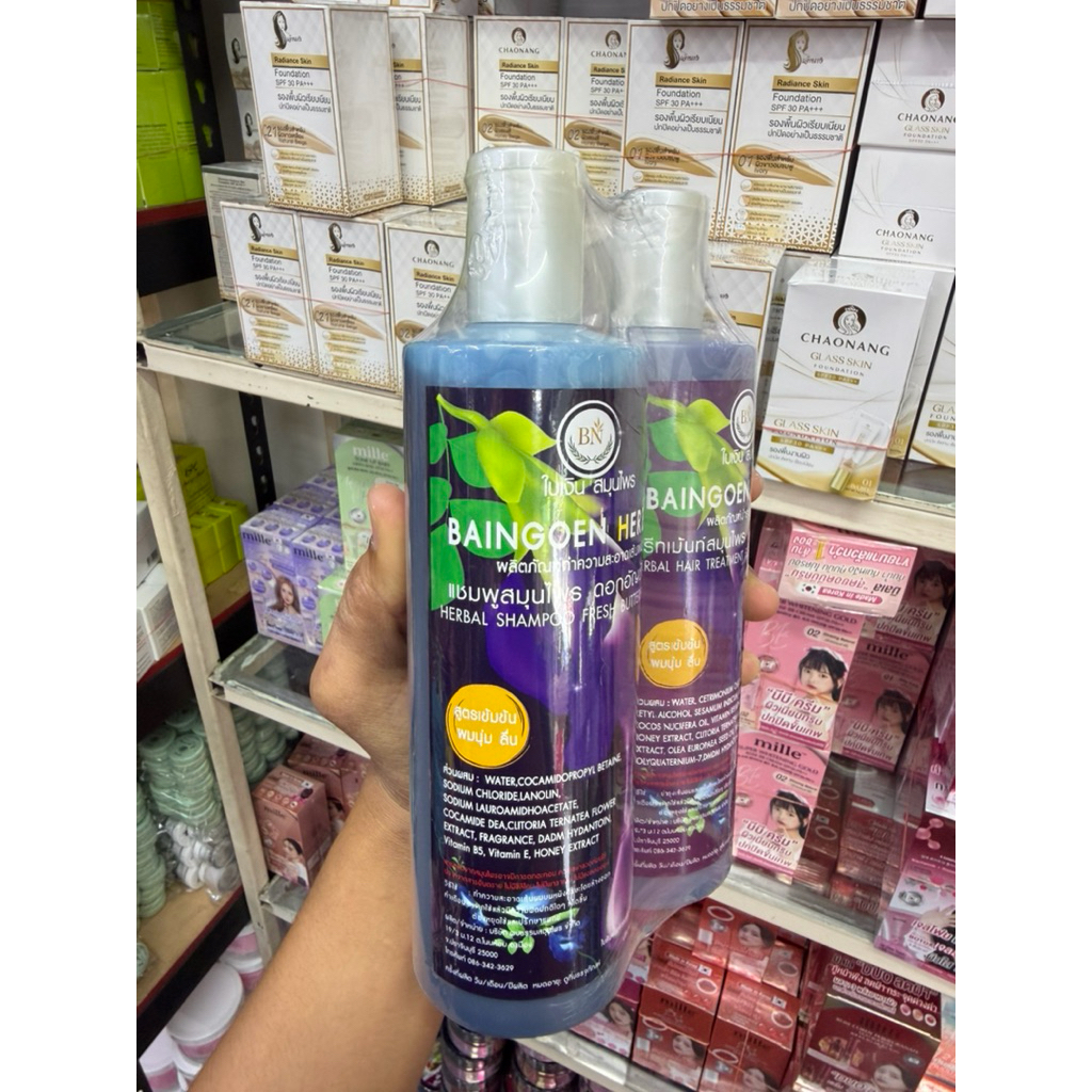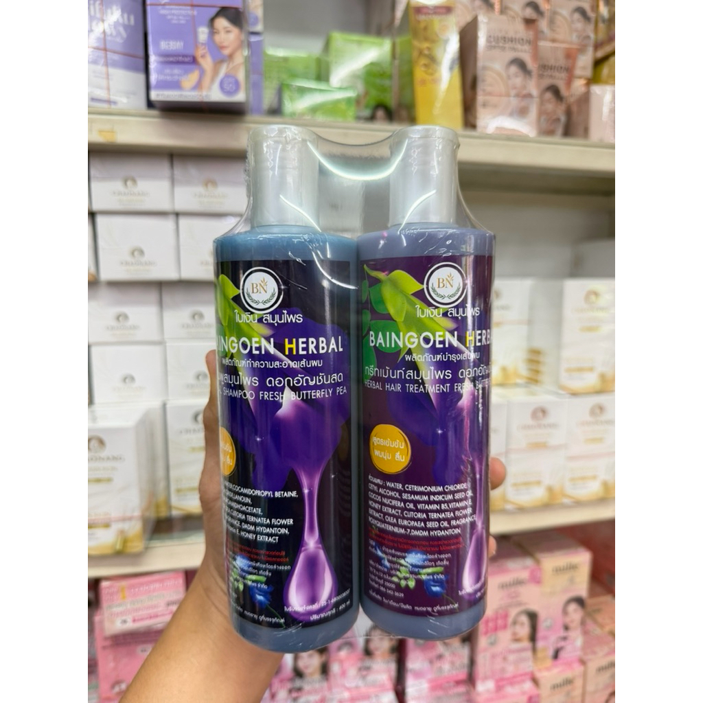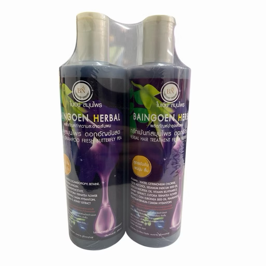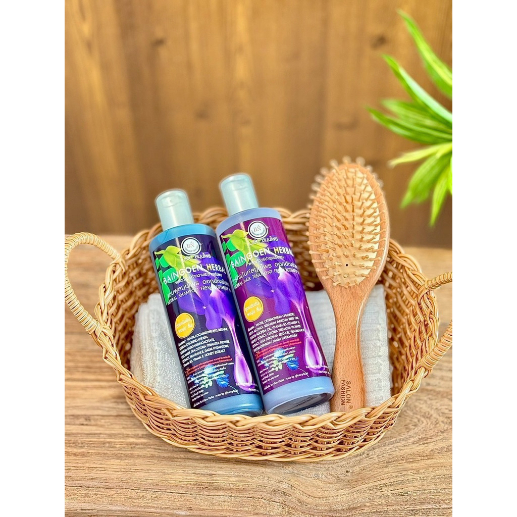 แชมพูสมุนไพร+ทรีทเม้นท์สมุนไพร ดอกอัญชันสด BAINGOEN HERBAL