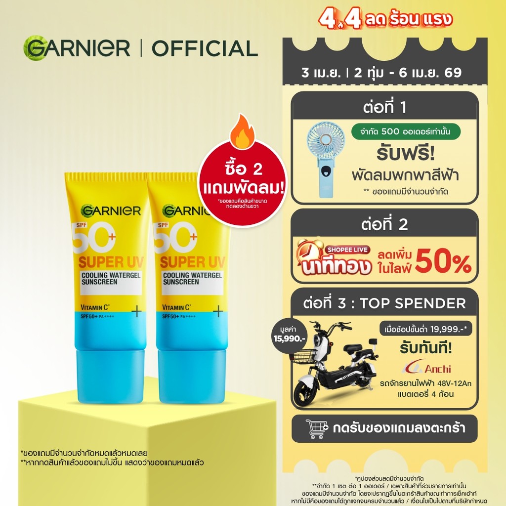 การ์นิเย่ ซุปเปอร์ ยูวี คูลลิ่ง วอเตอร์เจล ซันสกีน 30 มล.x2 GARNIER SUPER UV COOLING WATERGEL SUNSCREEN 30ml.x2