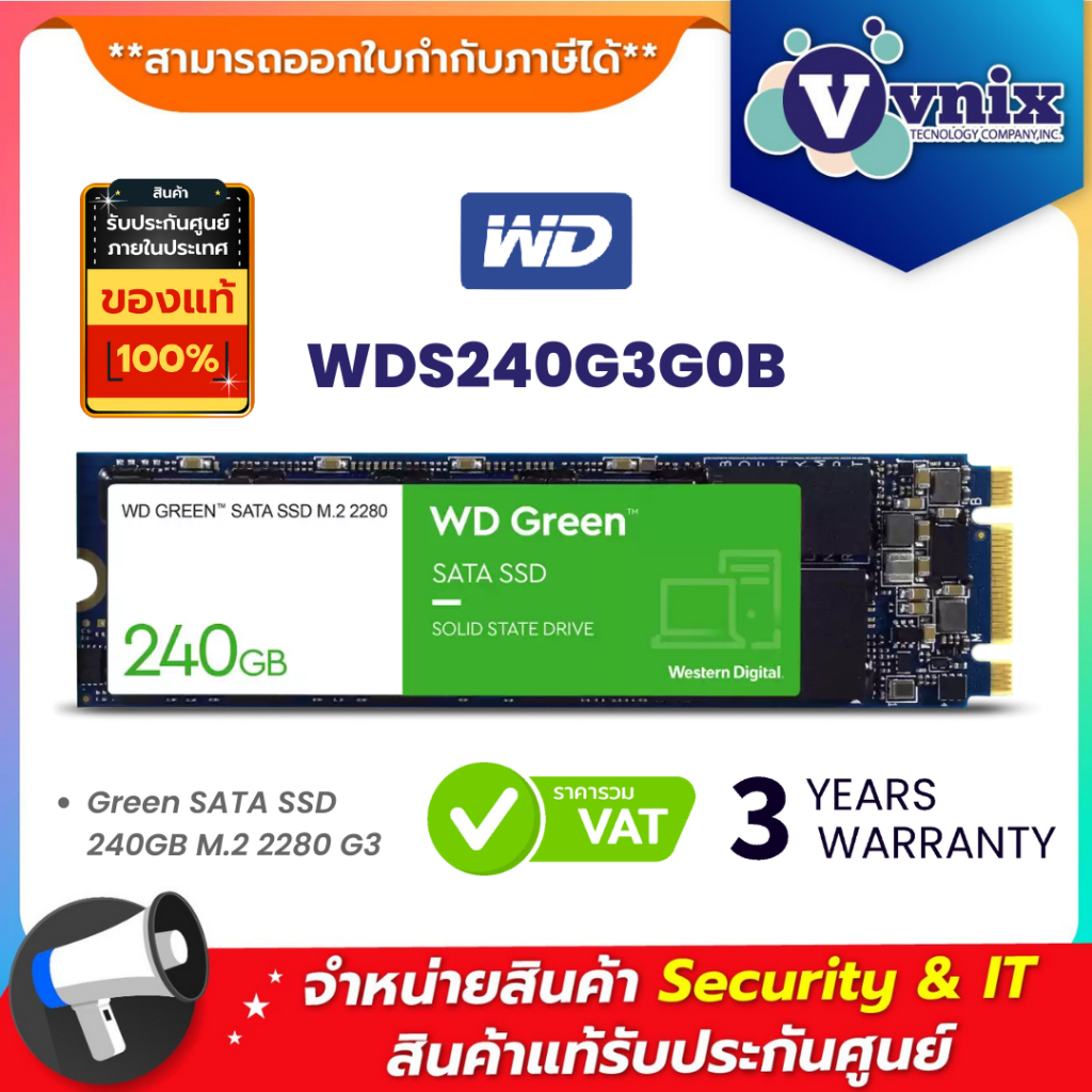 WD GREEN 240GB เอสเอสดี SATA M.2 2280 G3 (WDS240G3G0B) รับประกัน 3 ปี By Vnix Group