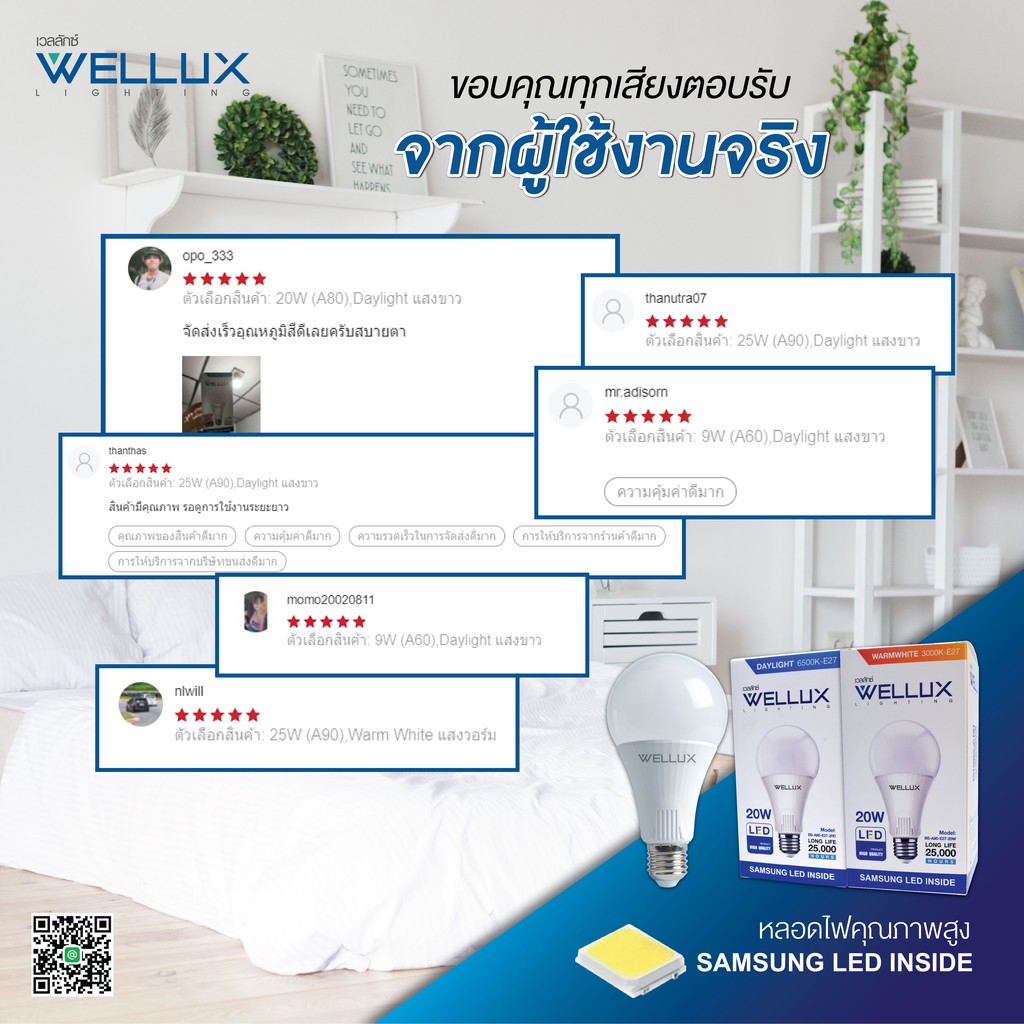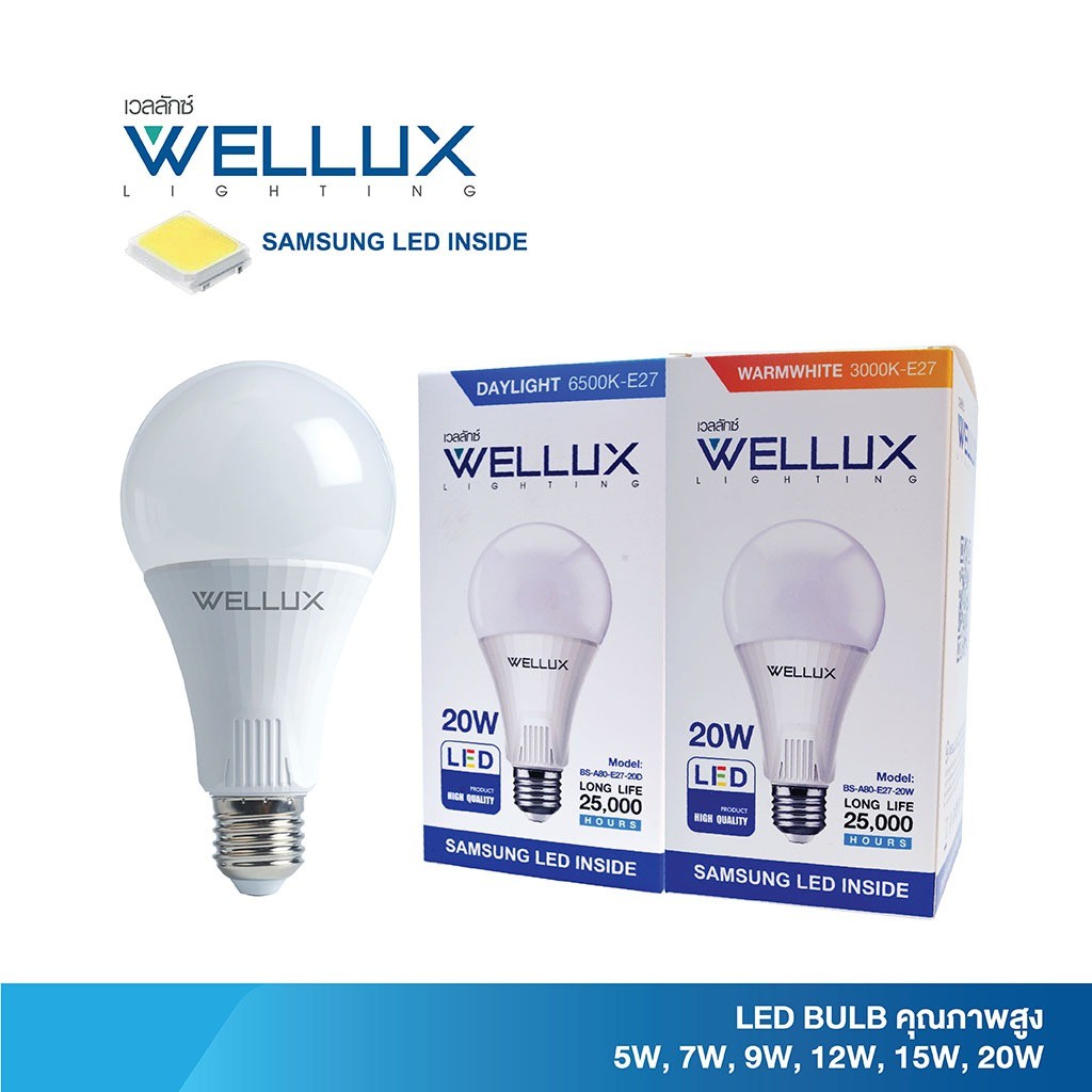 [Clearance]WELLUX หลอดไฟชิปซัมซุง 5W 7W 9W 15W 20W 25W คุณภาพสูง CHIP SUMSUNG LED BULB ขั้วE27