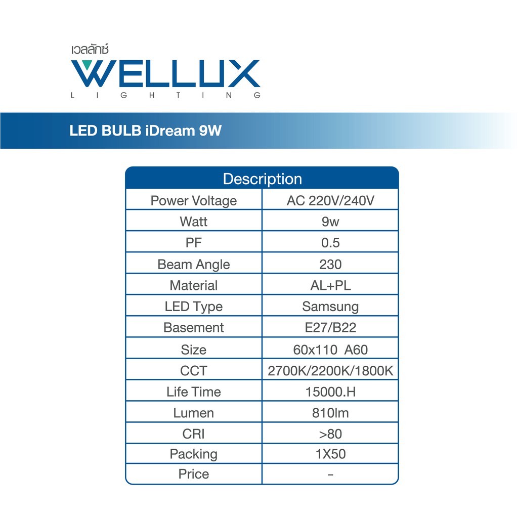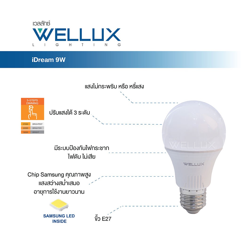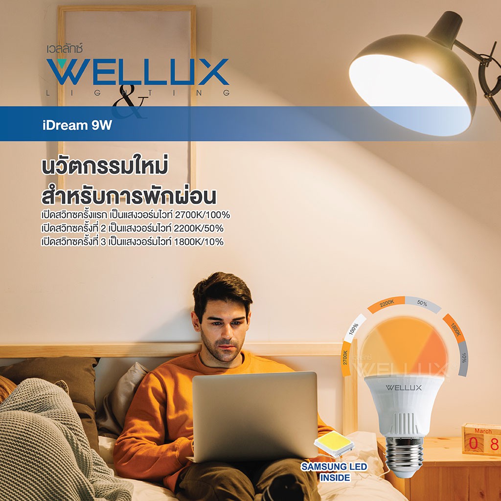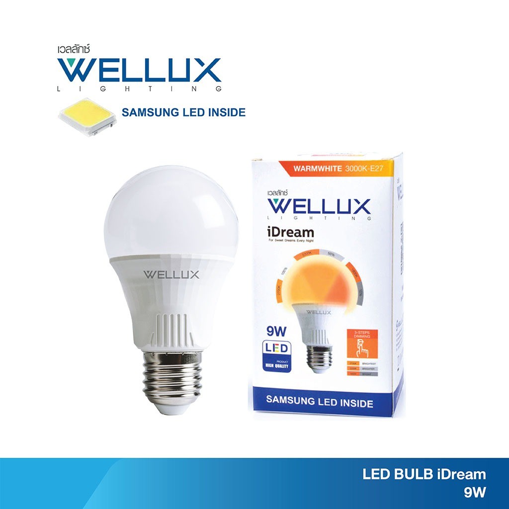 WELLUX หลอดไฟนวัตกรรมสำหรับการพักผ่อน ชิปซัมซุง 9W แสงวอร์ม LED Bulb iDream ขั้วE27