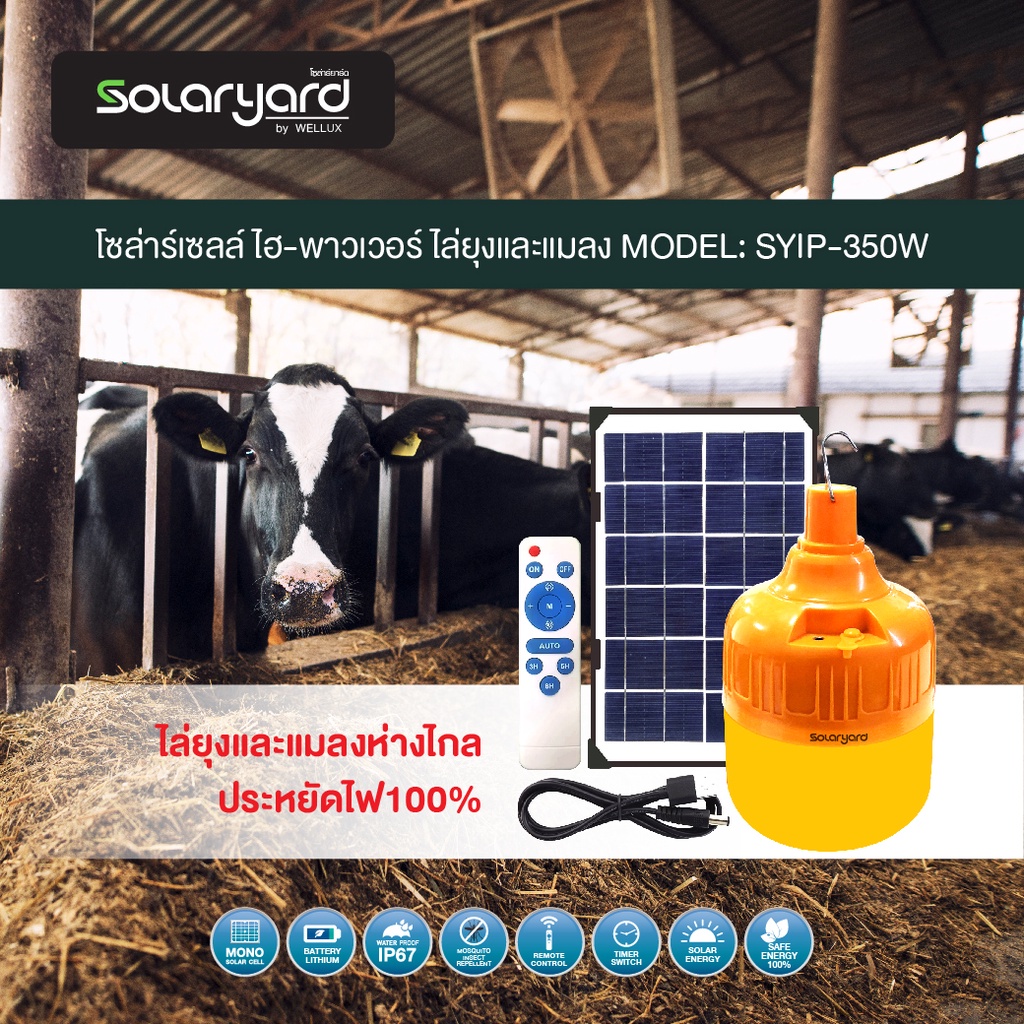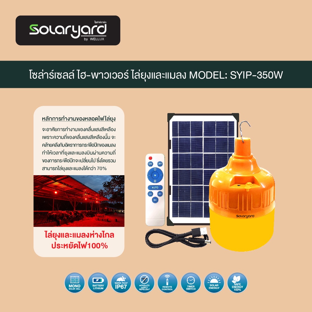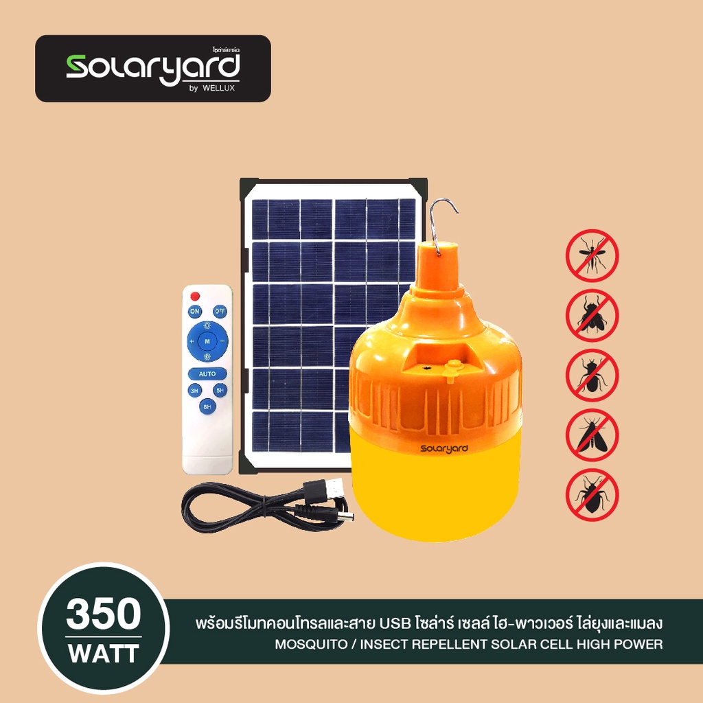 WELLUX หลอดไฟไฮพาวเวอร์โซล่าไล่ยุงและแมลงปีกอ่อน 350W SOLAR CELL LED HIGH POWER พร้อมรีโมทและสายชาร์จ USB