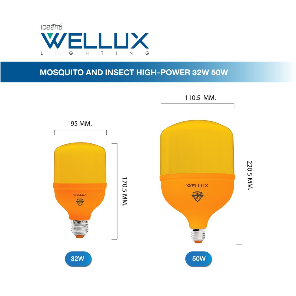 WELLUX หลอดไฟไฮวัตต์ไล่ยุงและแมลง 35W 50W ป้องกันโรคไข้เลือดออก LED HIGH WATT ANTI-MOSQUITO ขั้วE27