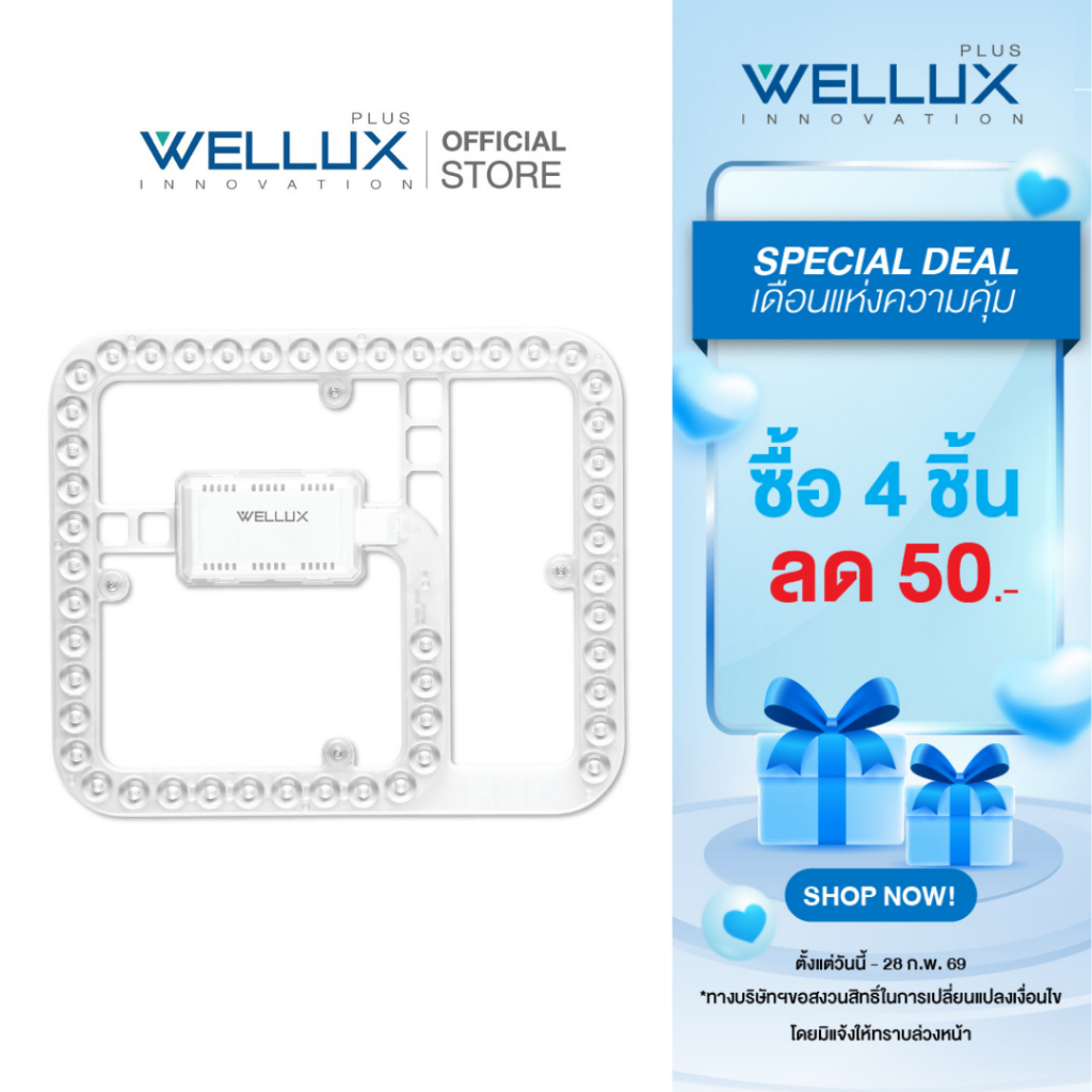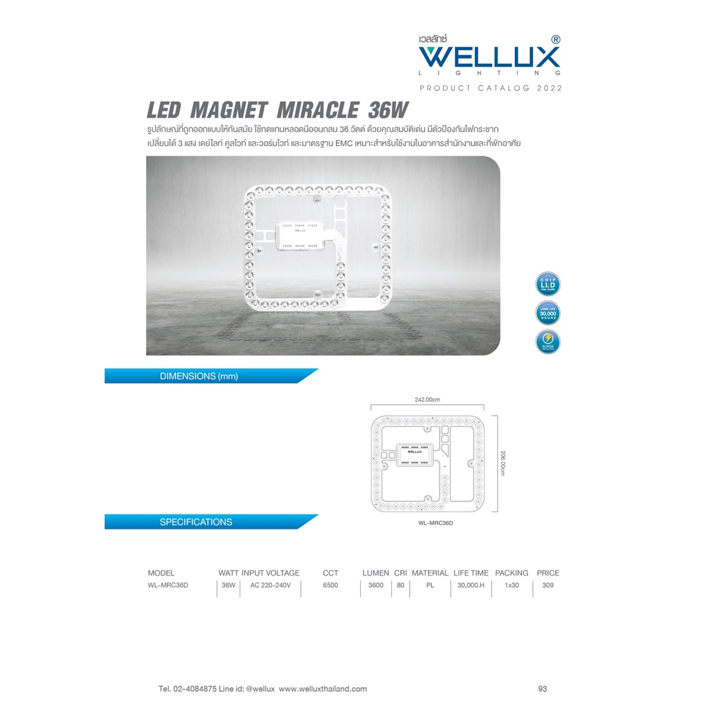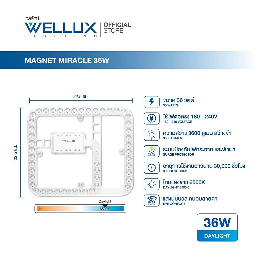 WELLUX แผงไฟแม่เหล็กทรงสี่เหลี่ยม 36W 3600ลูเมน แสงขาว LED MODULE