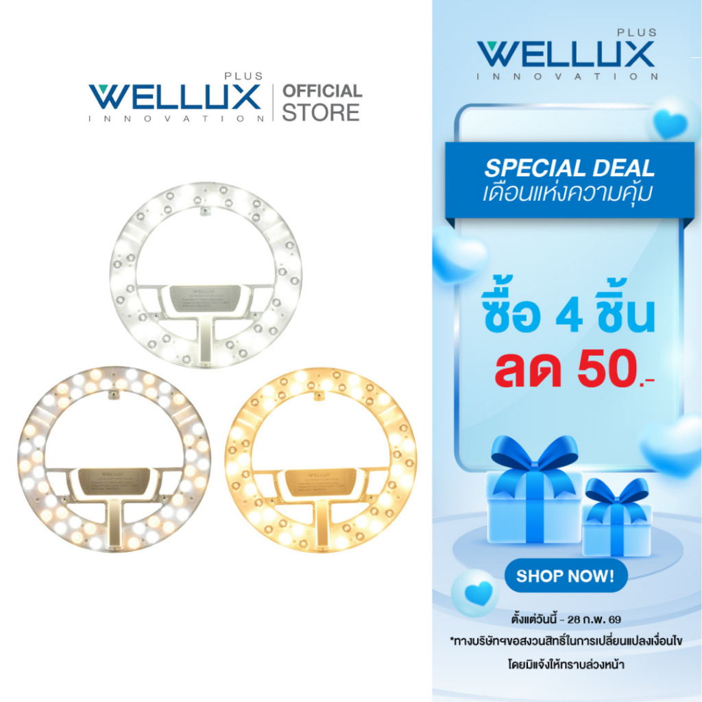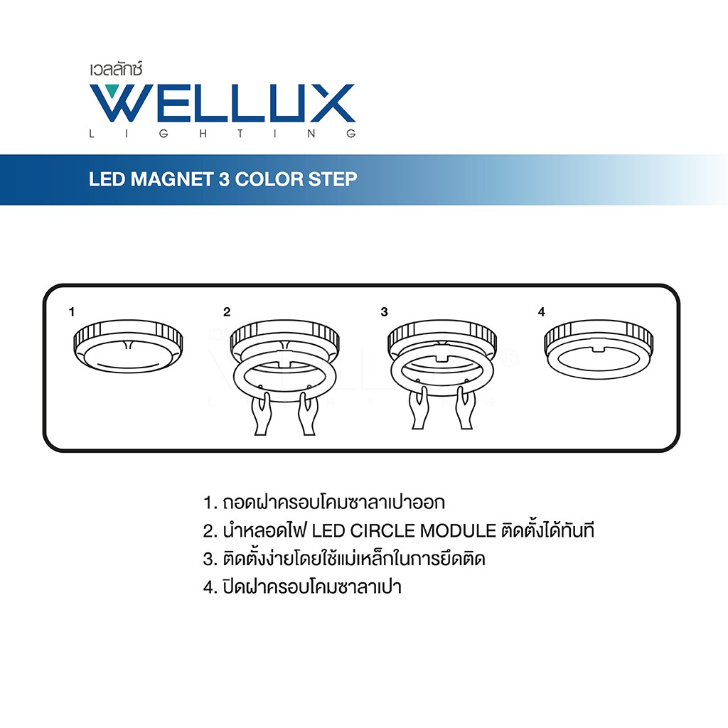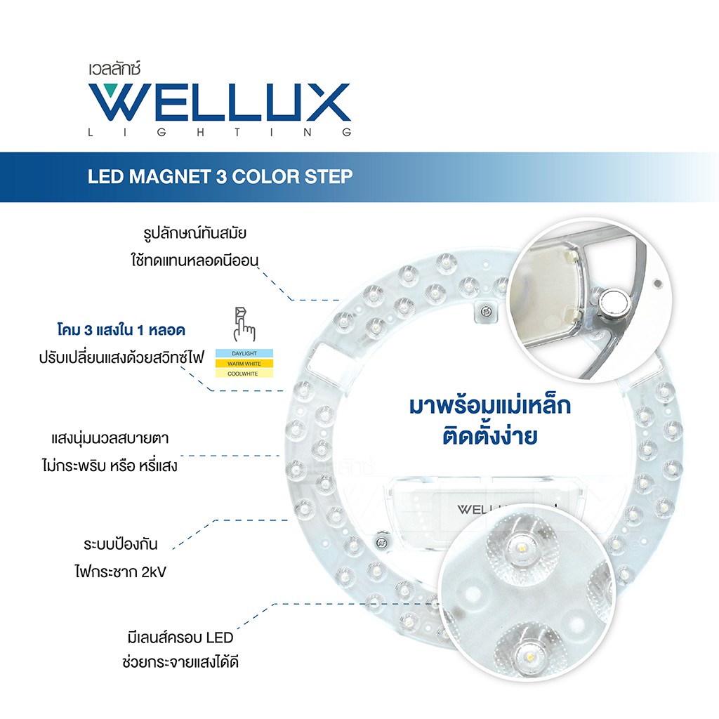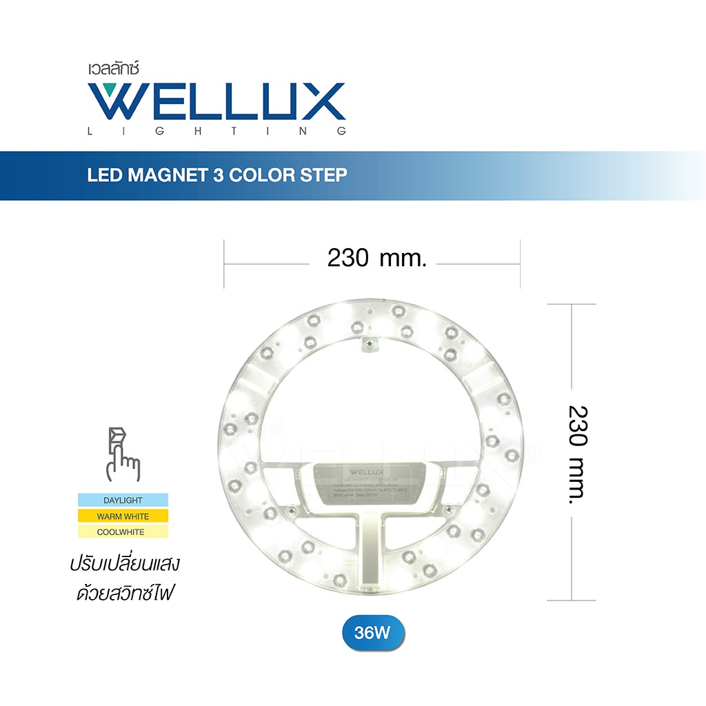 WELLUX แผงไฟแม่เหล็ก 3 แสง 36W แสงขาว แสงวอร์ม แสงคลู ทดแทนหลอดนีออนกลม LED CIRCLE MODULE 3 STEP