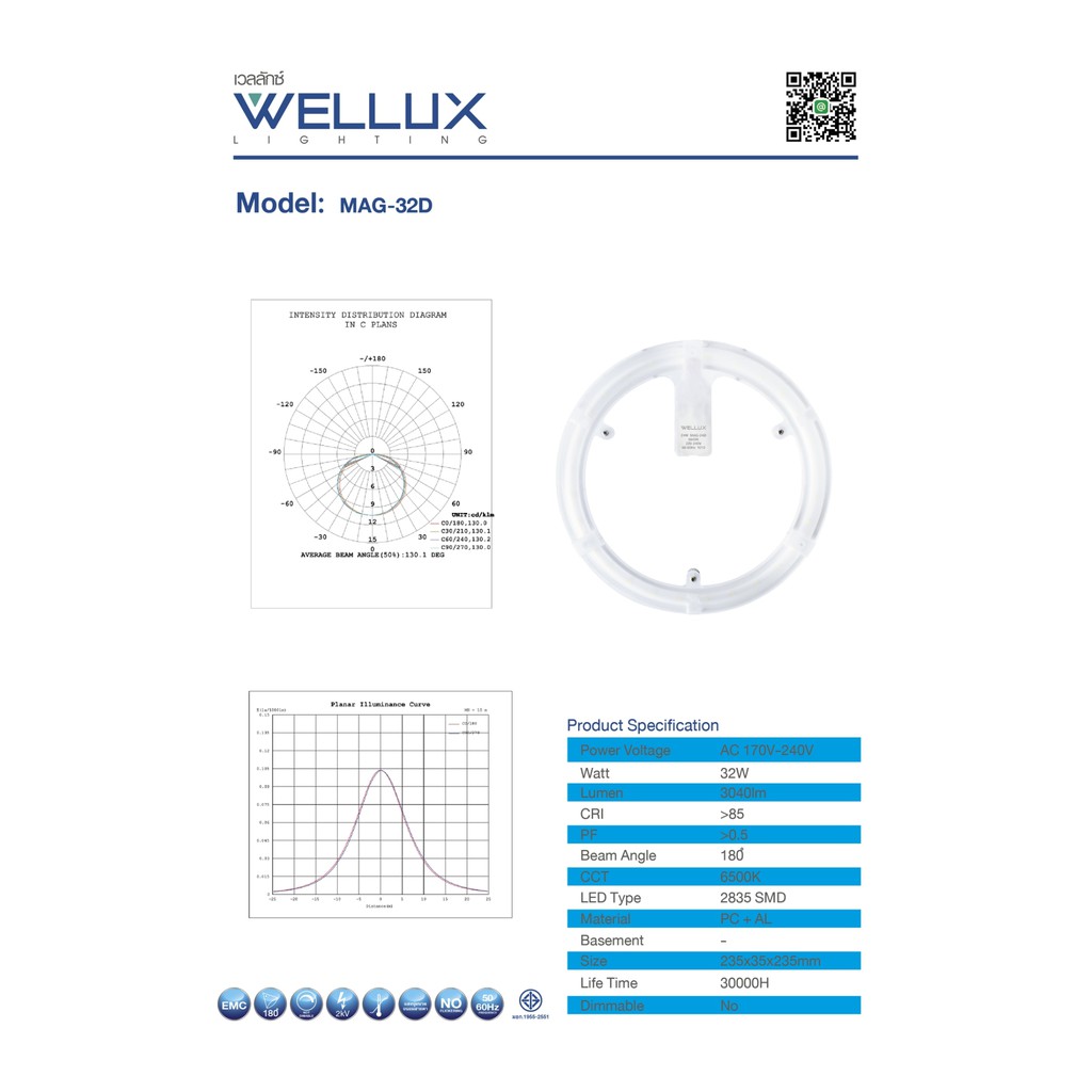 WELLUX แผงไฟแม่เหล็ก 32W 3640ลูเมน ทดแทนหลอดนีออนกลม แสงขาว LED CIRCLE MODULE [MAG-32D]