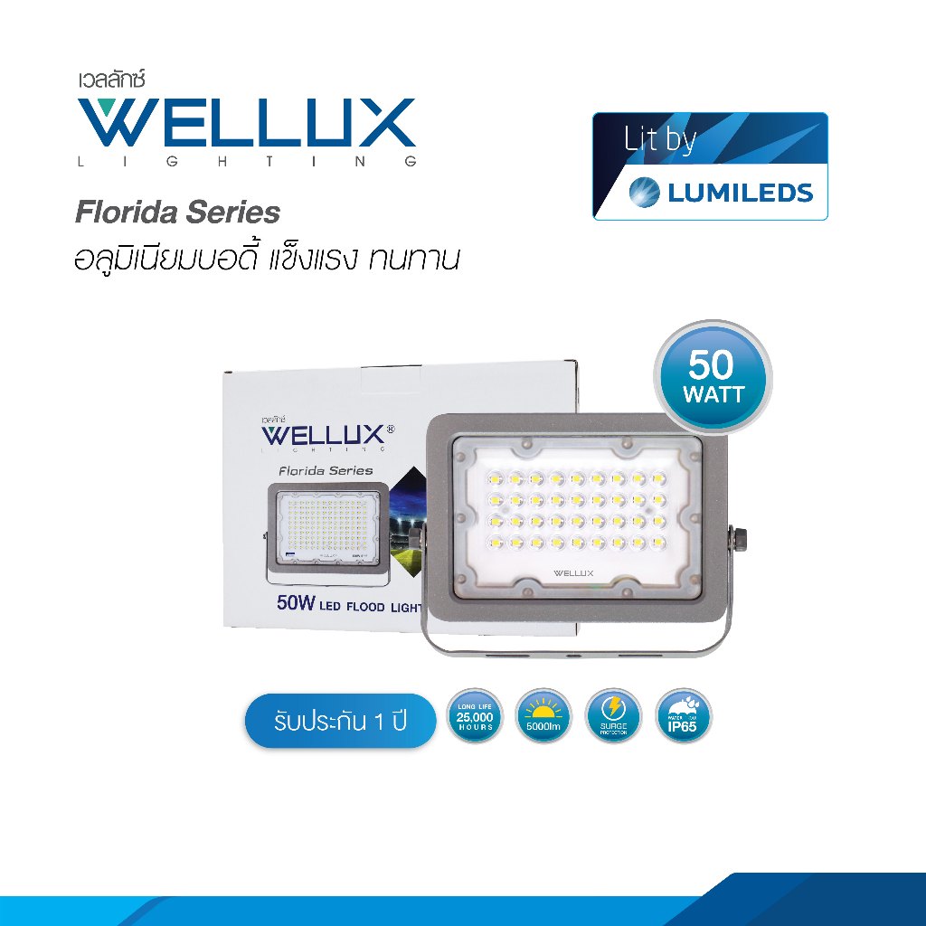 WELLUX โคมฟลัดไลท์ โคมสปอร์ตไลท์ 30W 50W 100W 150W 200W LED FLOODLIGHT รุ่น FLORIDA SERIES