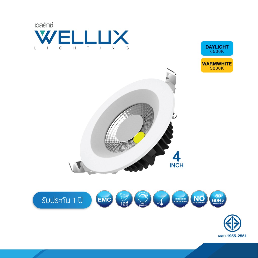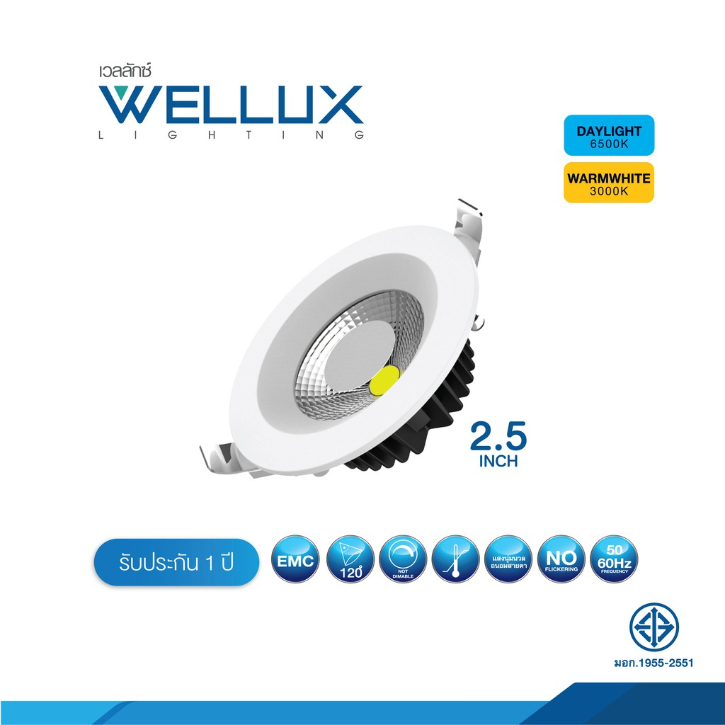 [1แถม1]WELLUX โคมไฟดาวน์ไลท์ฝังฝ้าอลูมิเนียม 7W 10W 20W 30W แสงขาว แสงวอร์ม LED Downlight