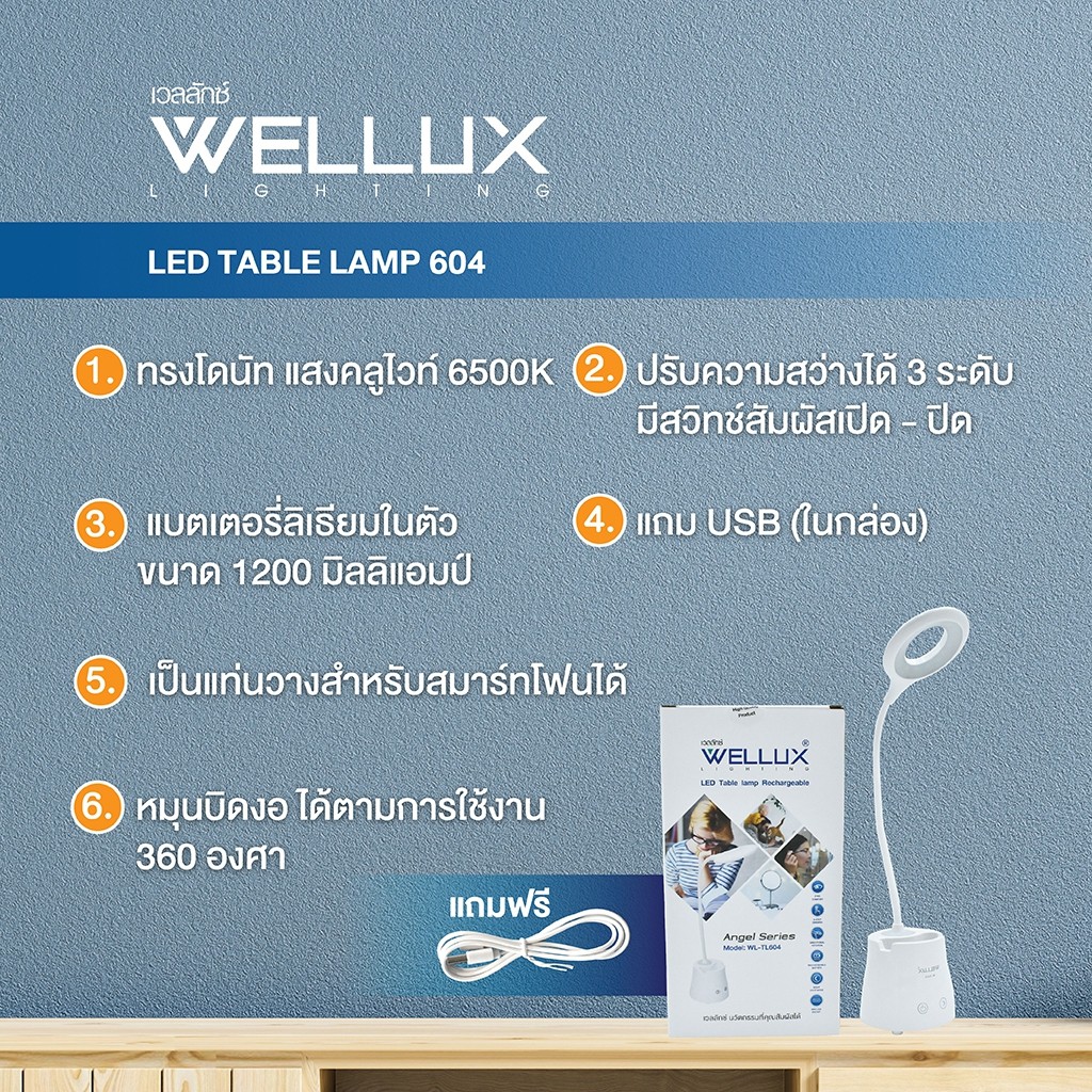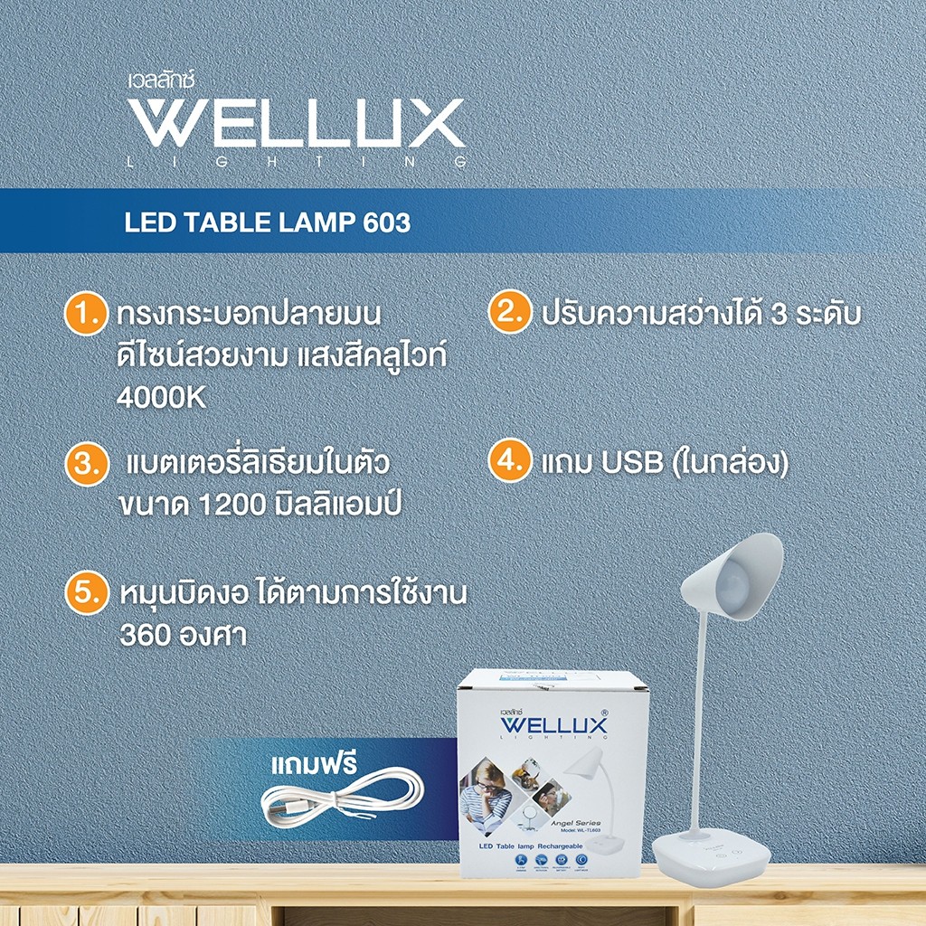 [1แถม1]WELLUX โคมไฟตั้งโต๊ะ โคมไฟอ่านหนังสือ 3W 4.5W ปรับหรี่แสงได้ระบบสัมผัส LED TABLE LAMP