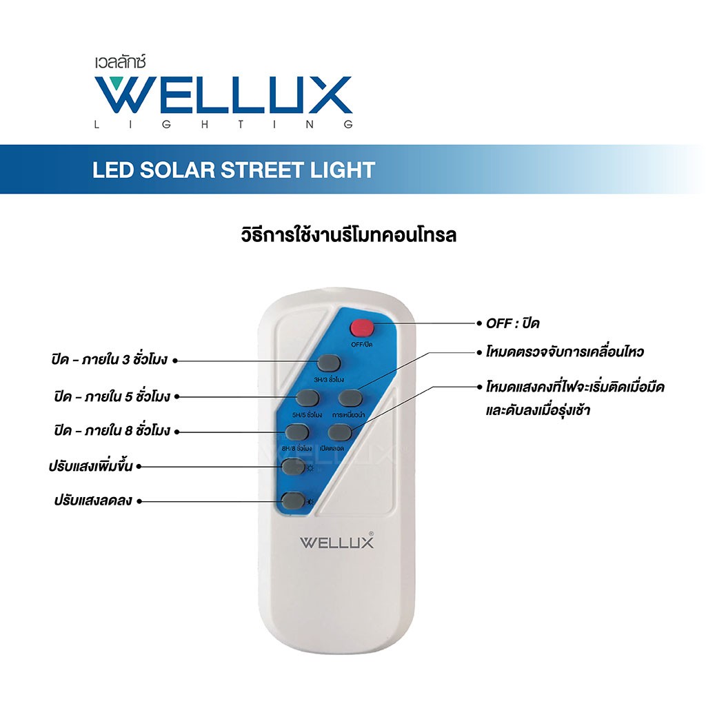 WELLUX โคมไฟถนนพลังงานแสงอาทิตย์ 100W 200W 300W แสงขาว แสงวอร์ม LED Solar Street Light