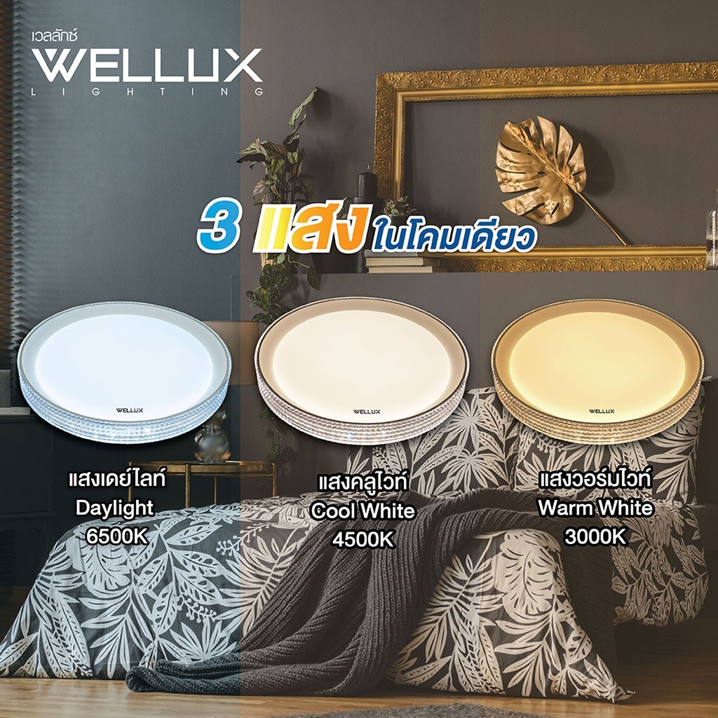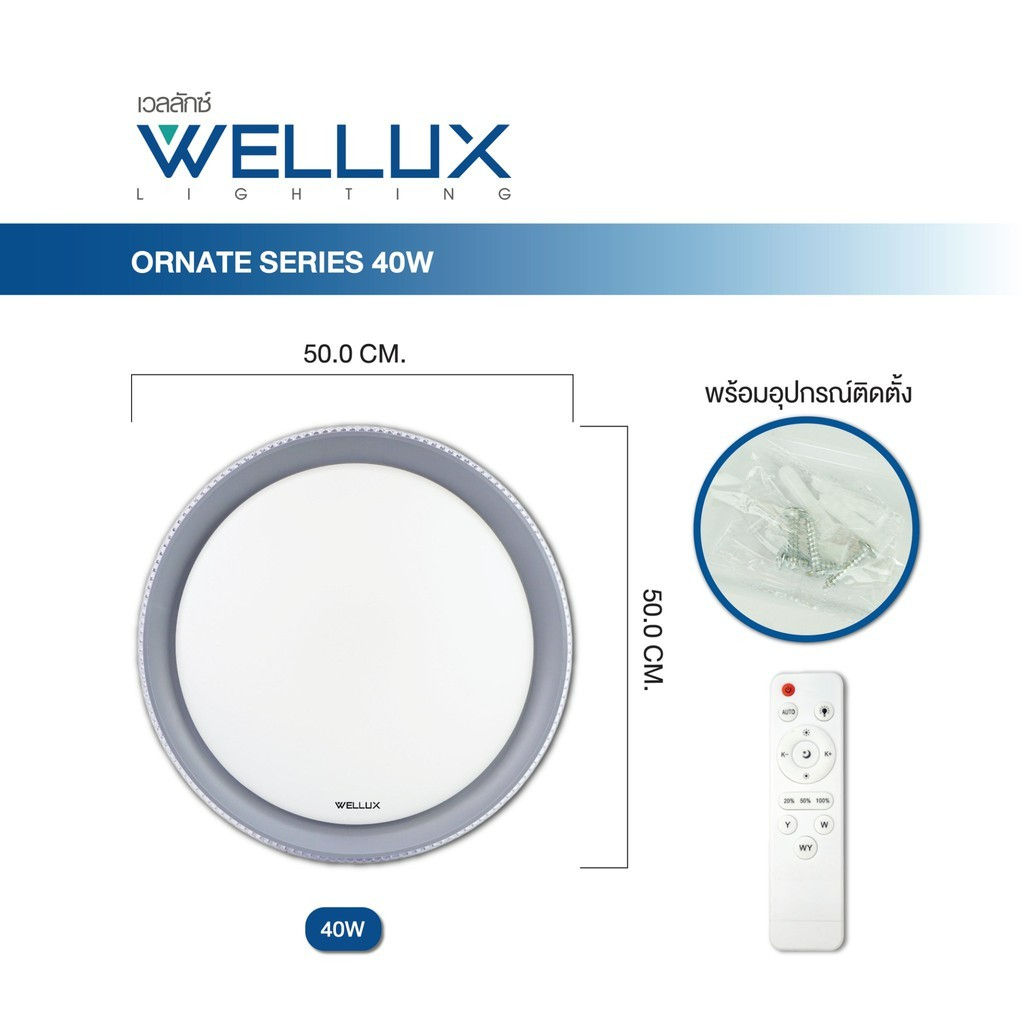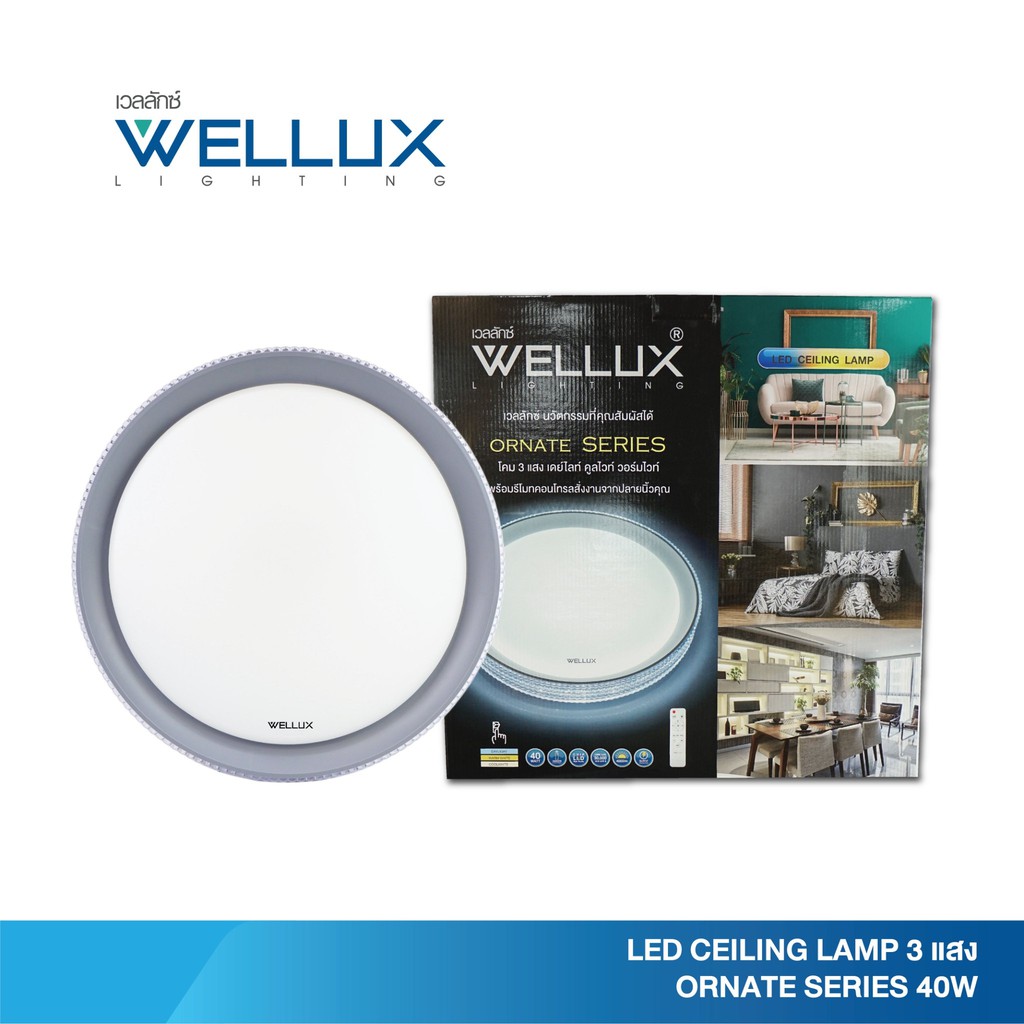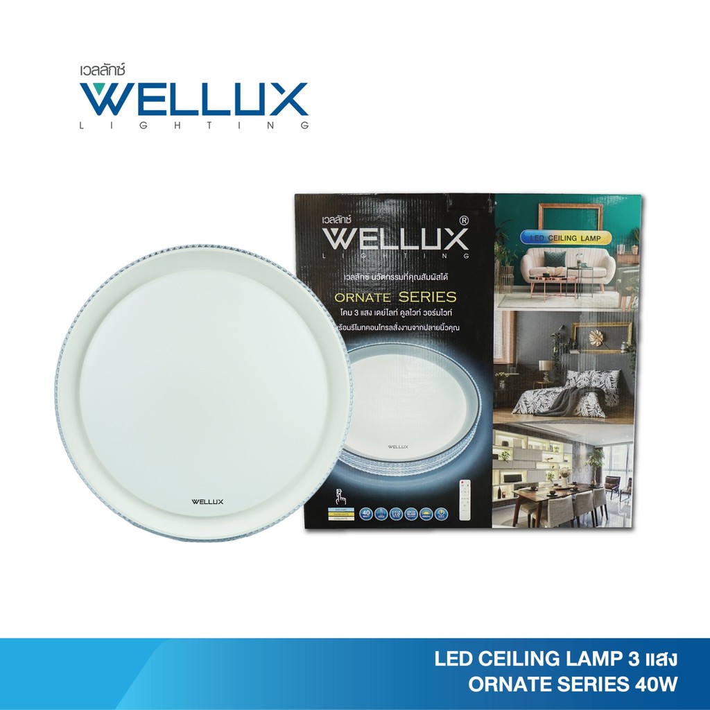 WELLUX โคมไฟเพดานติดลอย 3 แสง 42W มีรีโมท LED Multi-Smart Ceiling Lamp รุ่น ORNATE SERIES