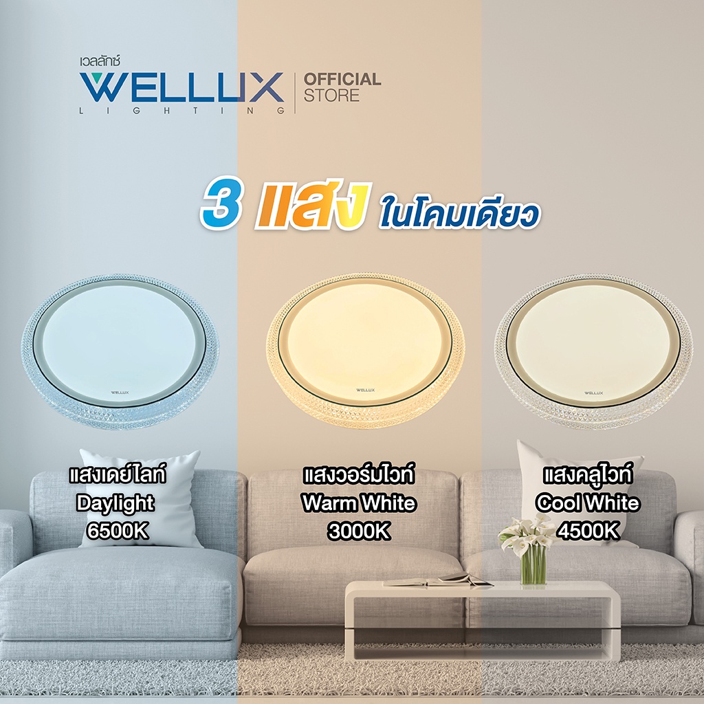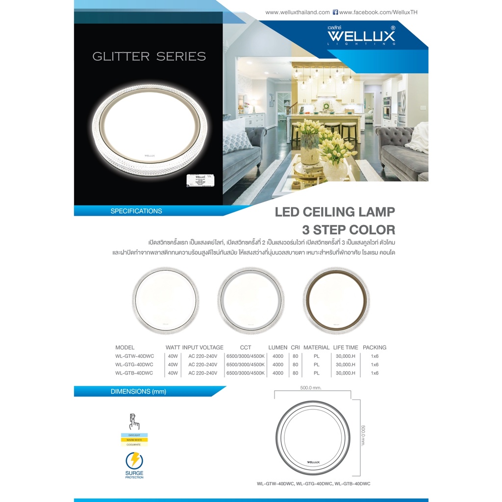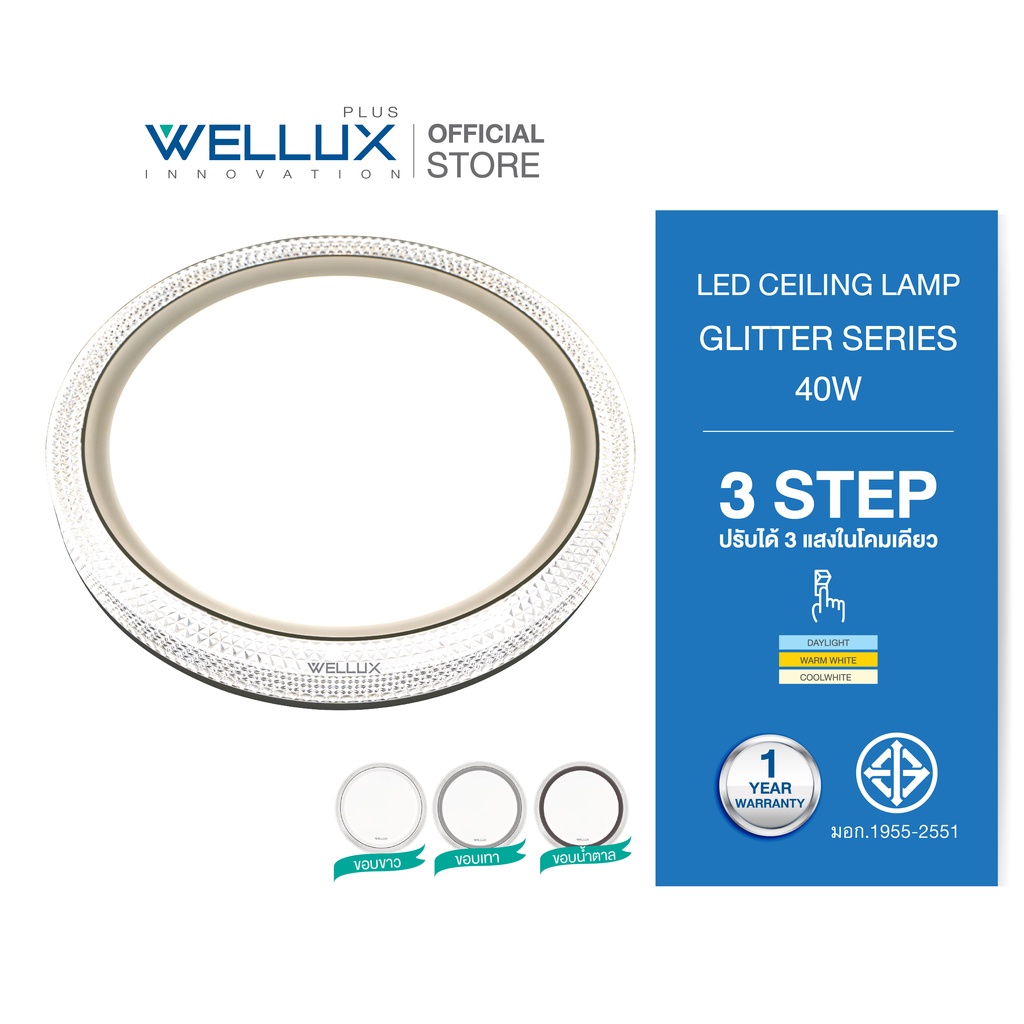 WELLUX โคมไฟเพดานติดลอย 3 แสง 40W LED CEILING LAMP 3 STEP รุ่น GLITTER SERIES