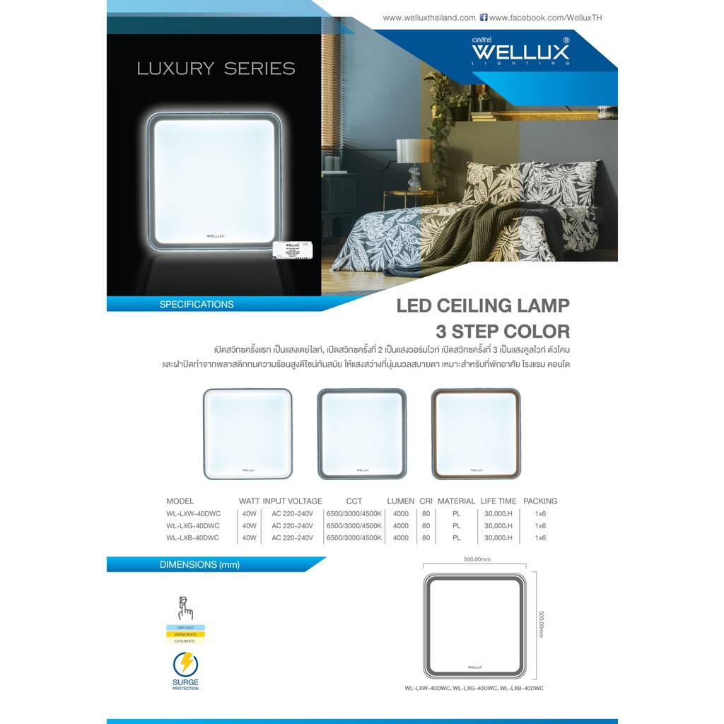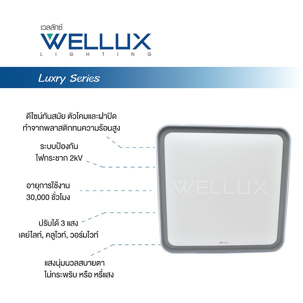 WELLUX โคมไฟเพดานติดลอย 3 แสง 40W LED CEILING LAMP 3 STEP รุ่น LUXRY SERIES