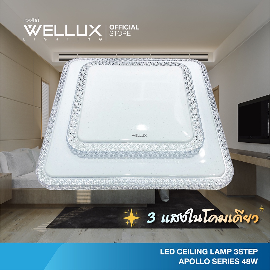 WELLUX โคมไฟเพดานติดลอย 3 แสง 48W แสงขาว แสงวอร์ม แสงคลู LED CEILING LAMP 3 STEP รุ่น APOLLO SERIES
