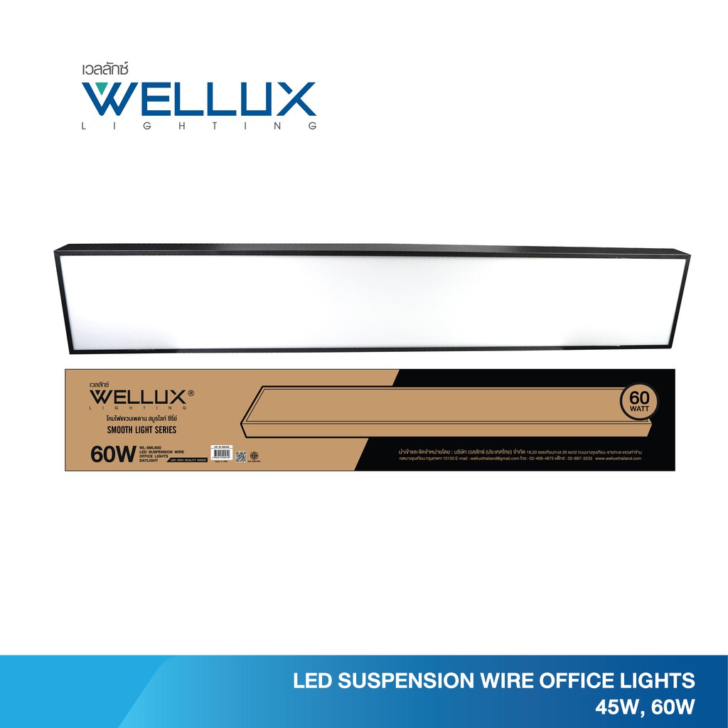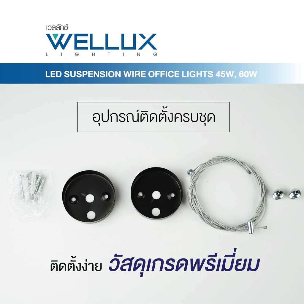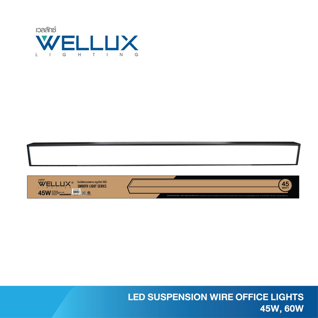 WELLUX โคมไฟแขวนเพดานสำเร็จรูป 45W 60W รุ่น SMOOTH LIGHT SERIES แสงขาว LED SUSPENSION WIRE OFFICE LIGHT