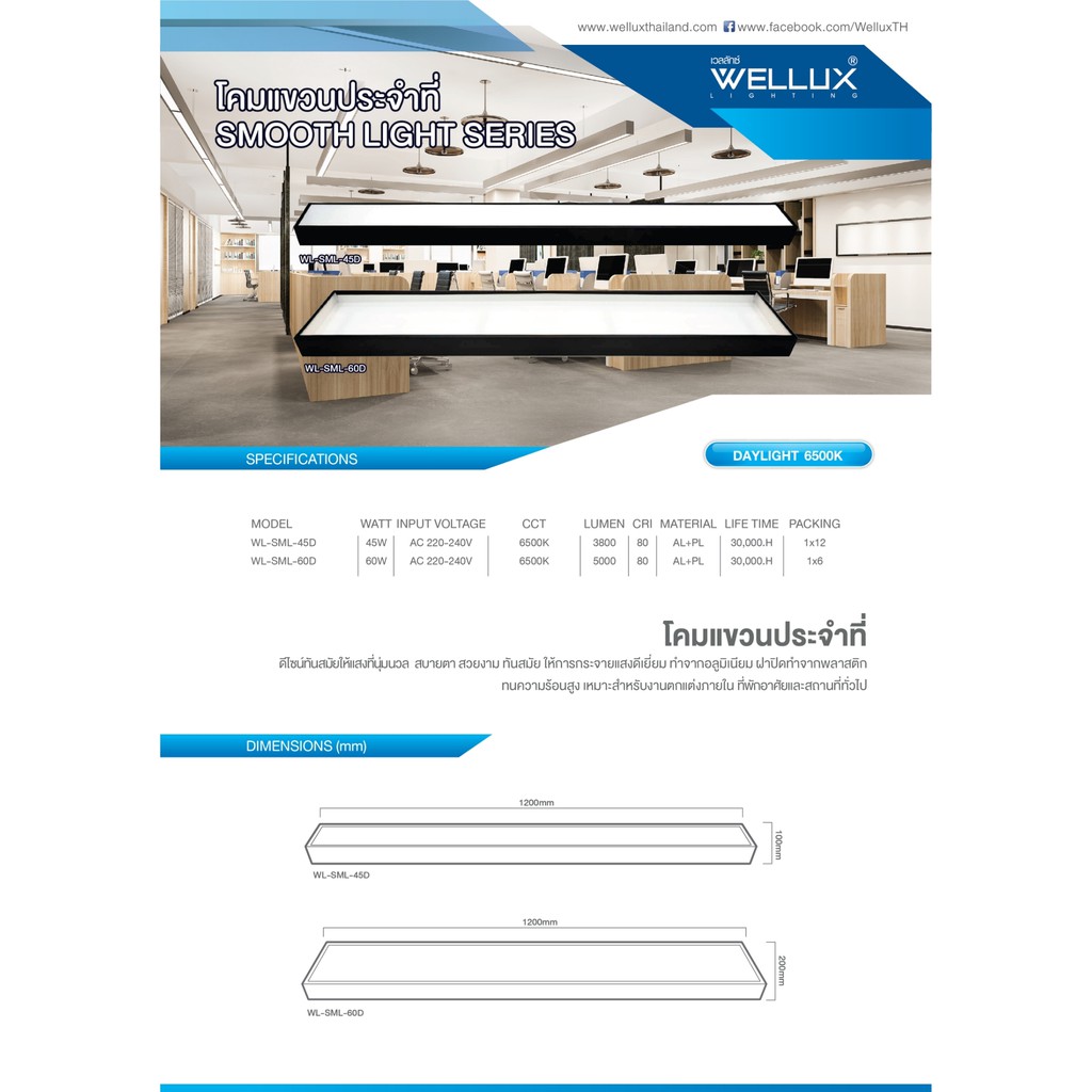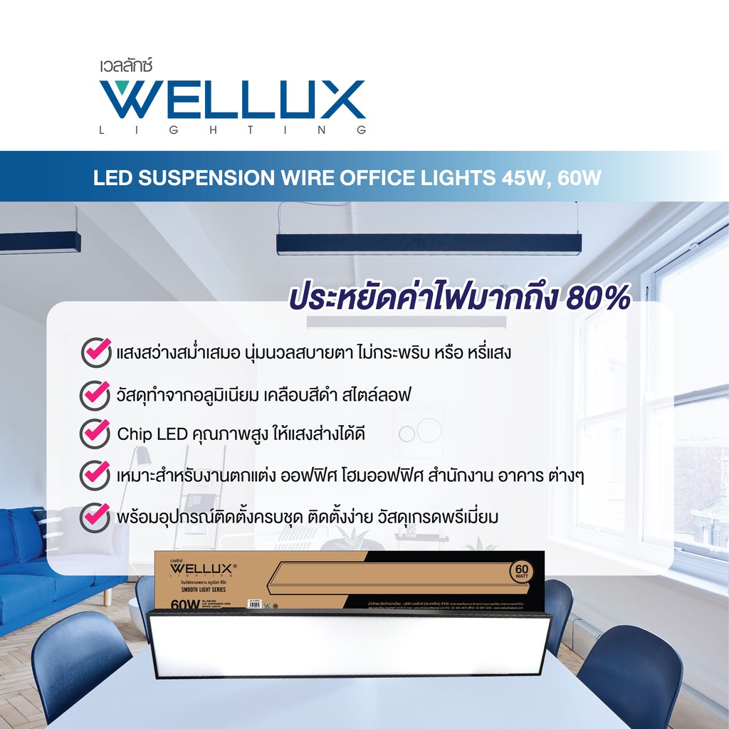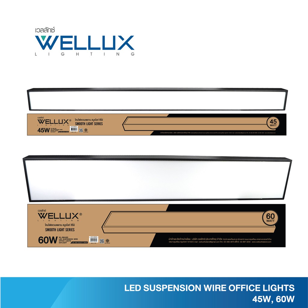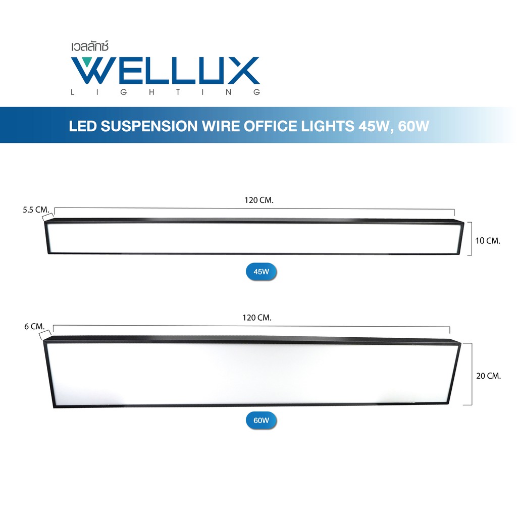 WELLUX โคมไฟแขวนเพดานสำเร็จรูป 45W 60W รุ่น SMOOTH LIGHT SERIES แสงขาว LED SUSPENSION WIRE OFFICE LIGHT