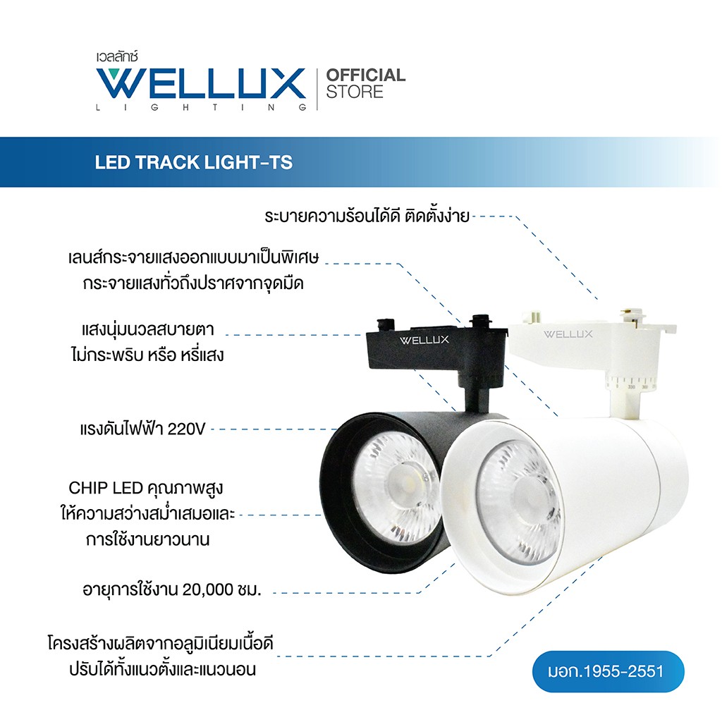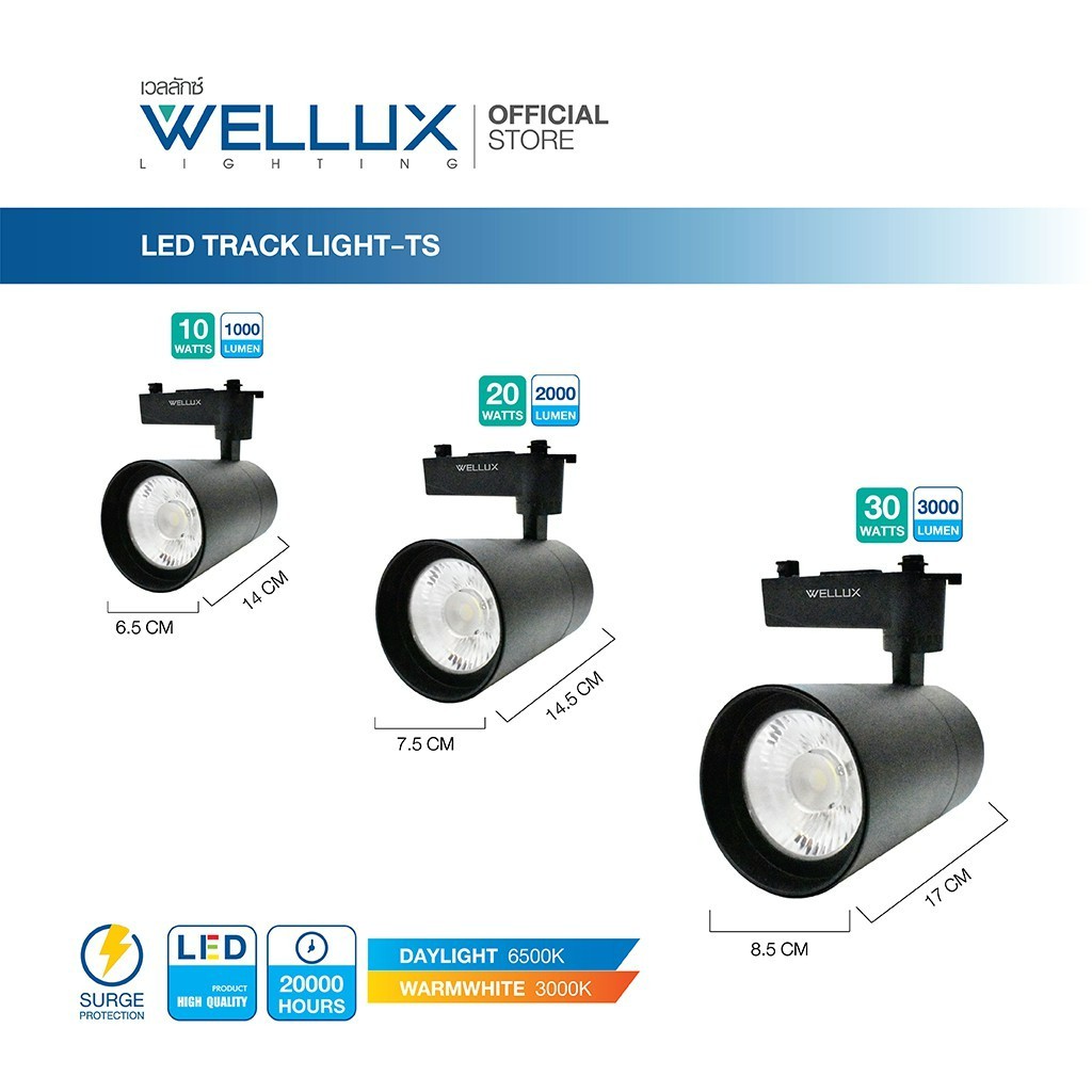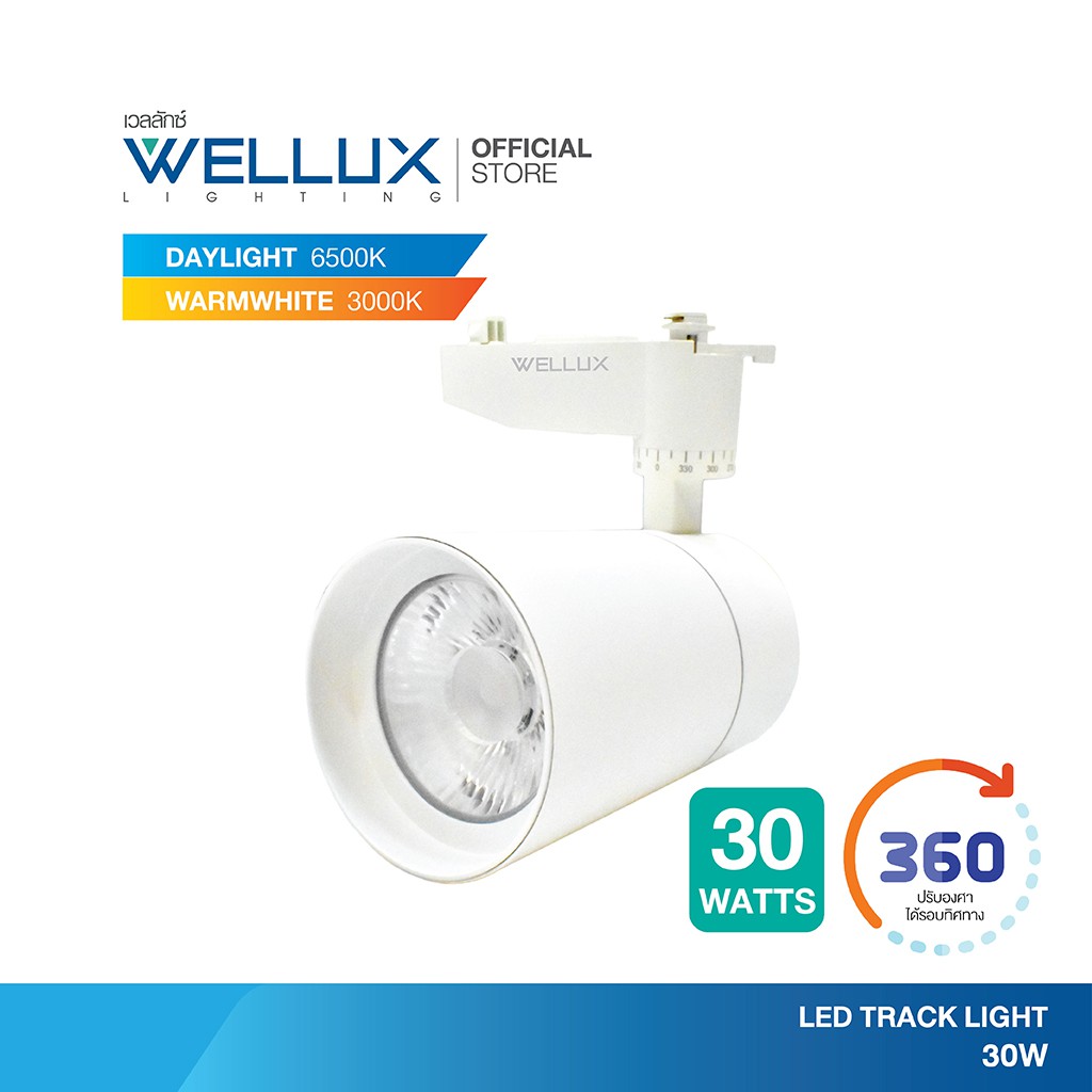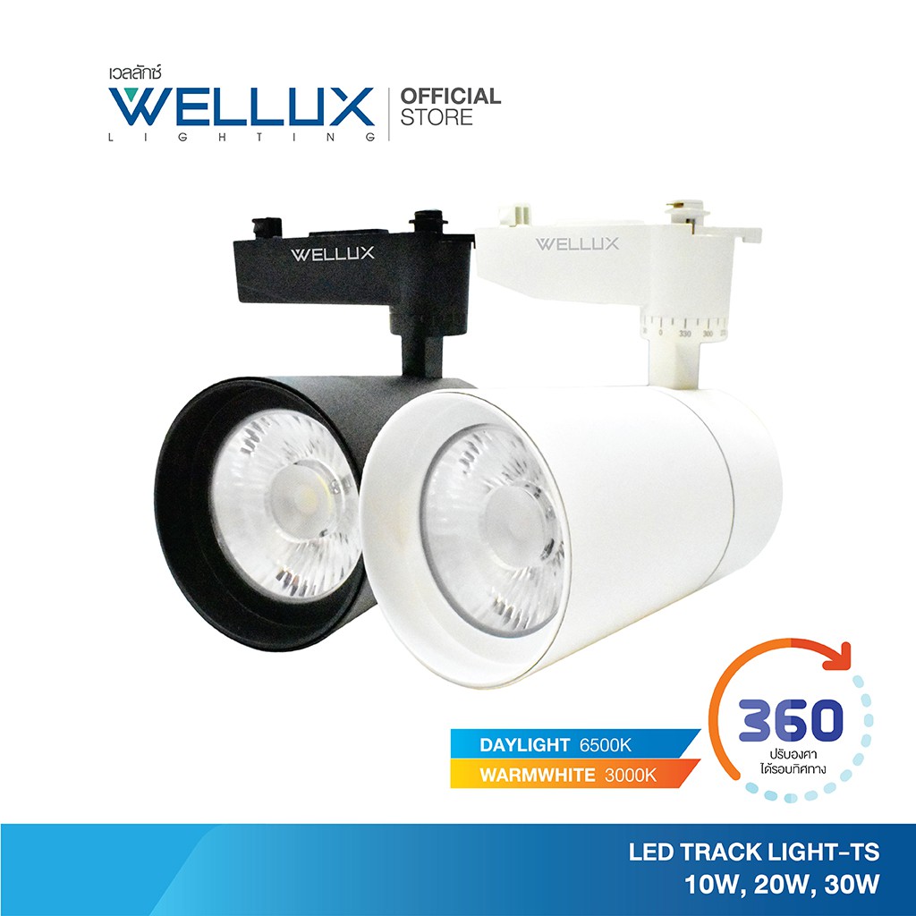 WELLUX โคมไฟแทร็คไลท์ติดรางไฟ สำเร็จรูป 10W 20W 30W บอดี้สีขาว-สีดำ แสงขาว แสงวอร์ม LED TRACK LIGHT แบบเรียบหรูหรา