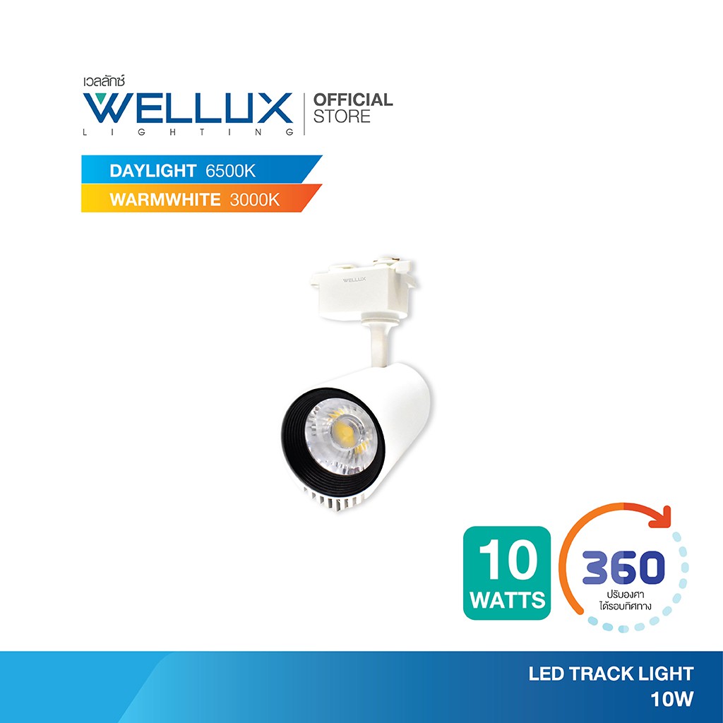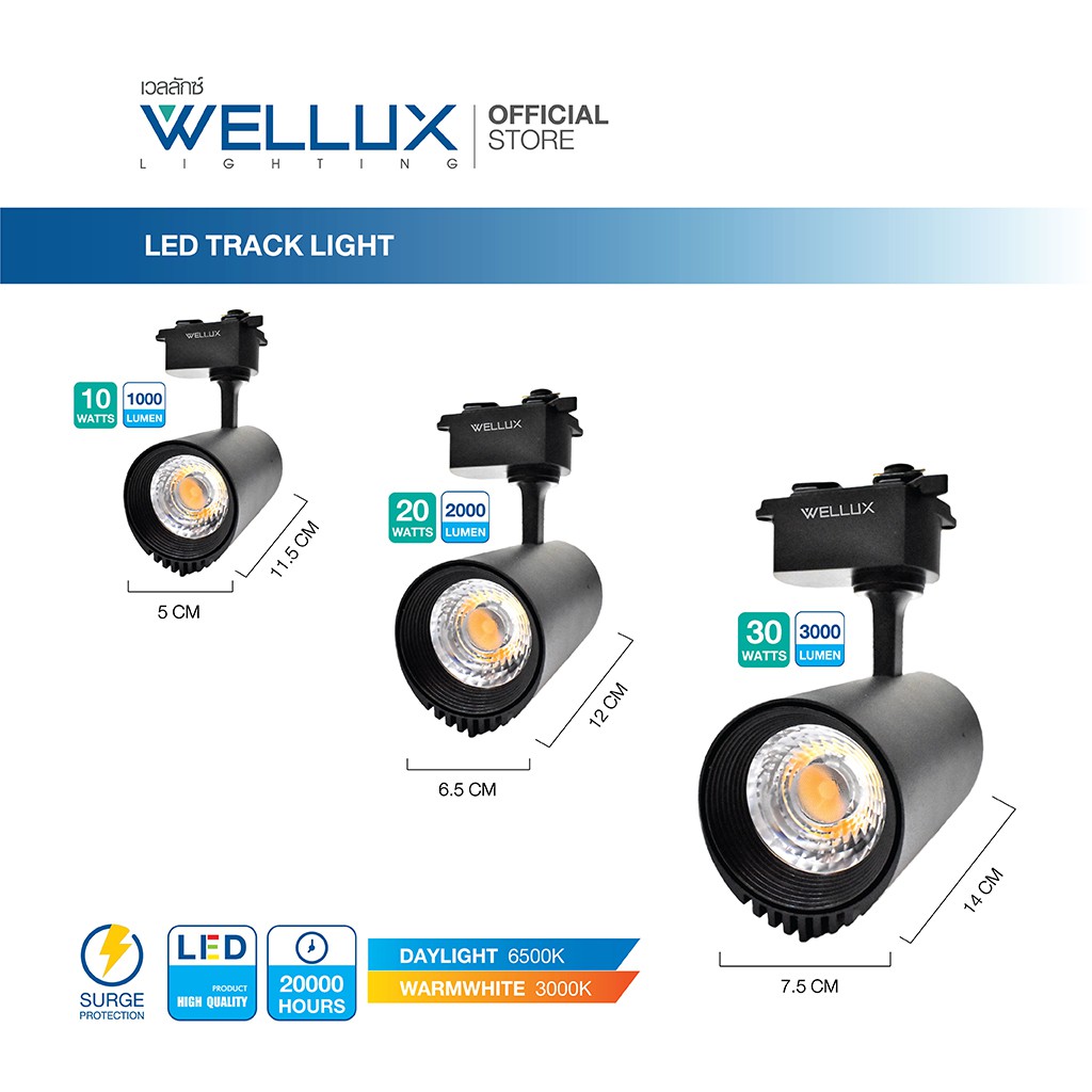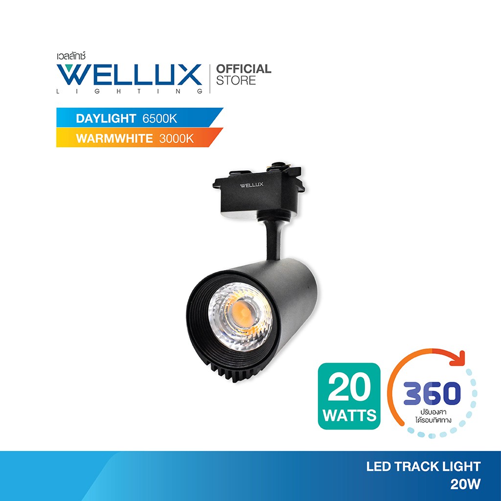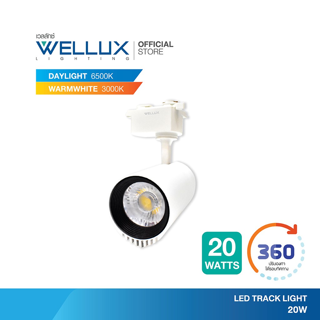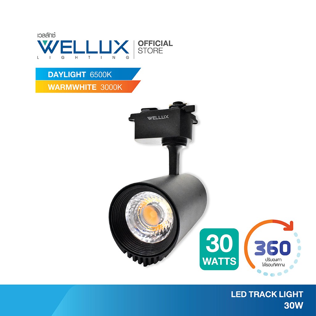 WELLUX โคมไฟแทร็คไลท์ติดรางไฟ สำเร็จรูป 10W 20W 30W บอดี้สีขาว-สีดำ แสงขาว แสงวอร์ม LED TRACK LIGHT