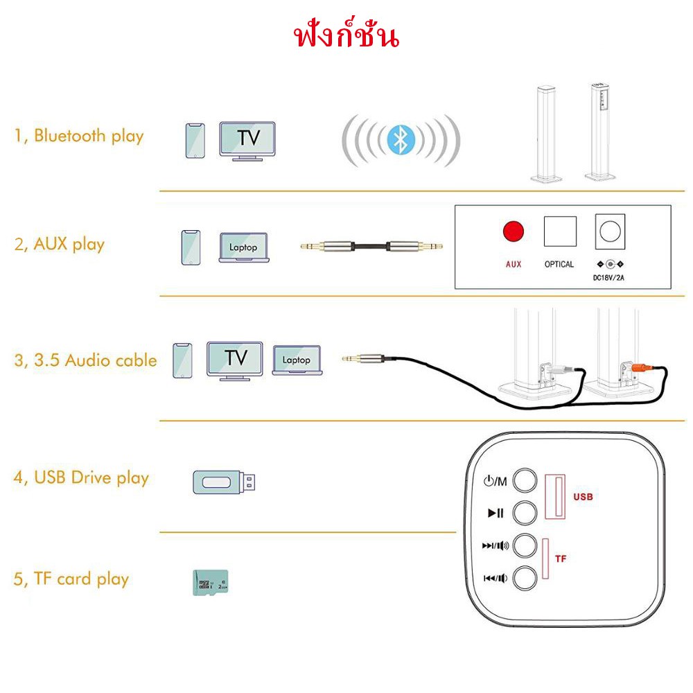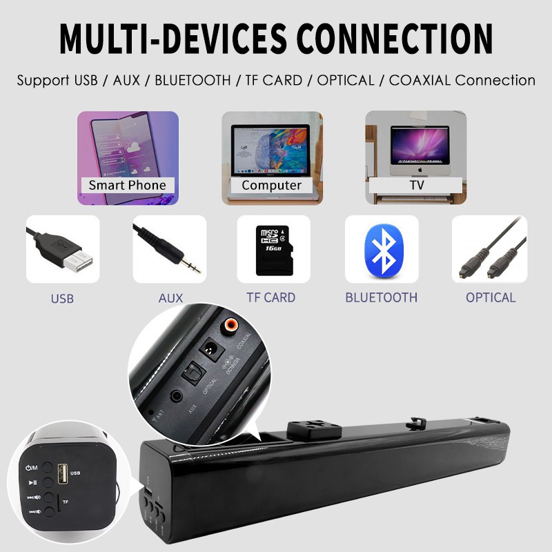 WEYON ลำโพงซาวด์บาร์ Super Bass 10W ลำโพงต่อทีวี Sound Bar ช่องต่อแบบ Optical, Bluetooth, AUX รองรับ USB และ SD Card