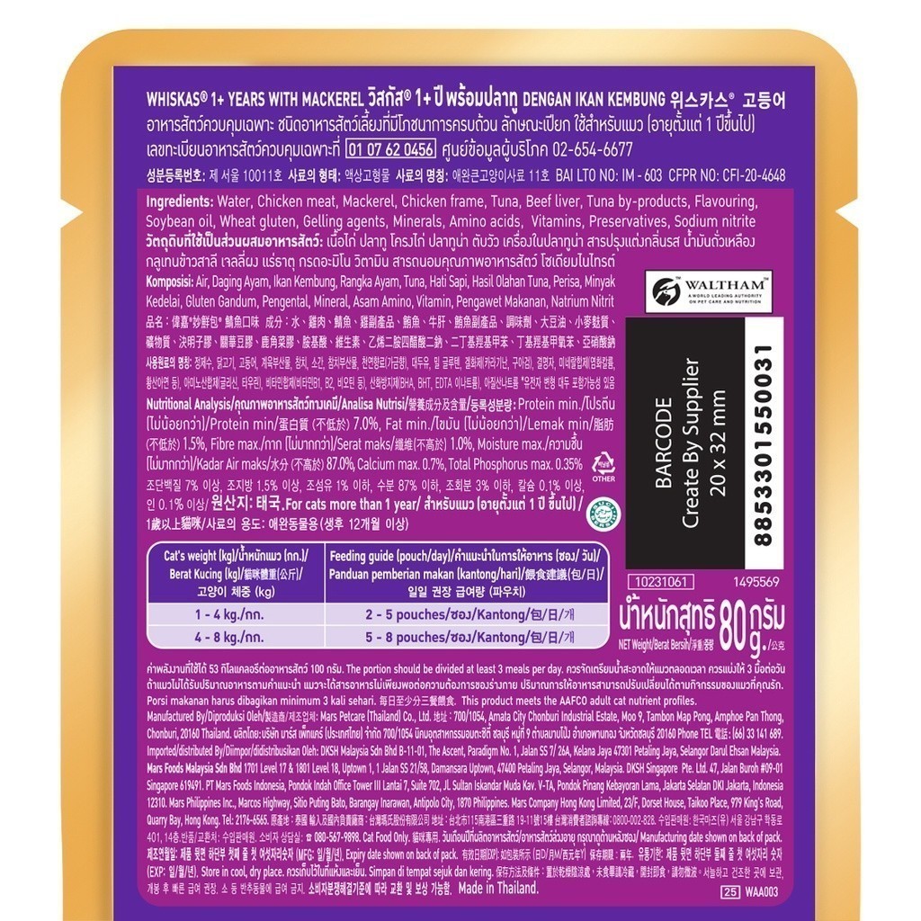 [24 ฟรี 4] WHISKAS วิสกัส อาหารเปียกแมว เลือกรสชาติได้ 80ก.