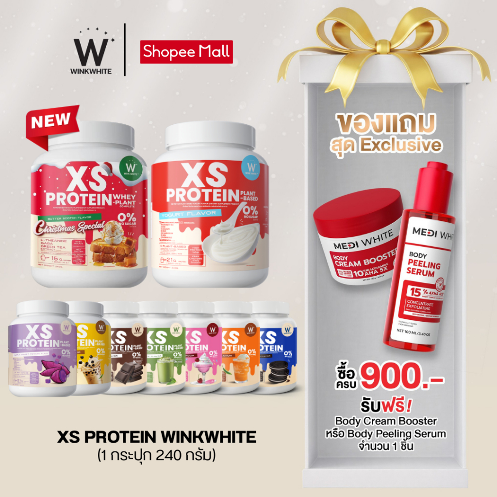 [โปรตีน] WINK WHITE XS Protein วิงค์ไวท์ โปรตีนช่วยคุมหิว เสริมสร้างกล้ามเนื้อ ทดแทนมื้ออาหาร (1 กระปุก 240 กรัม)