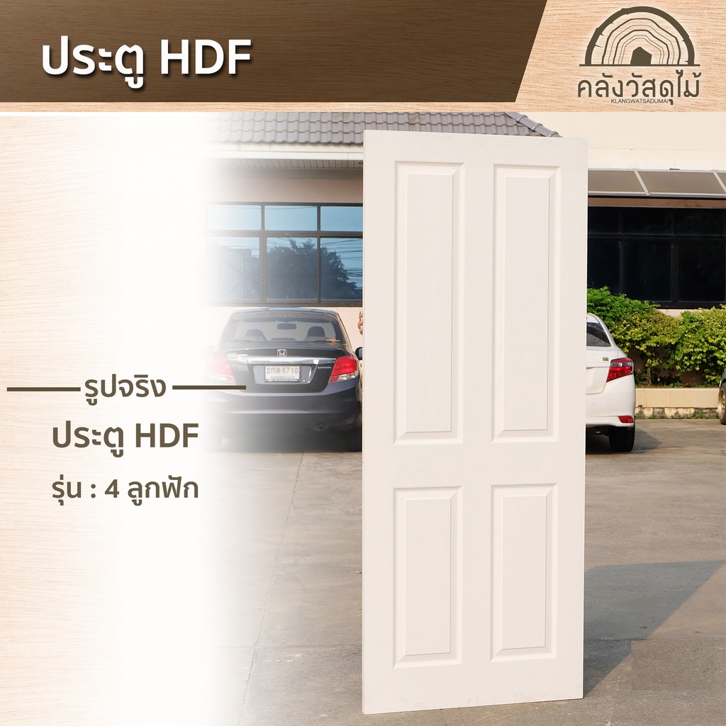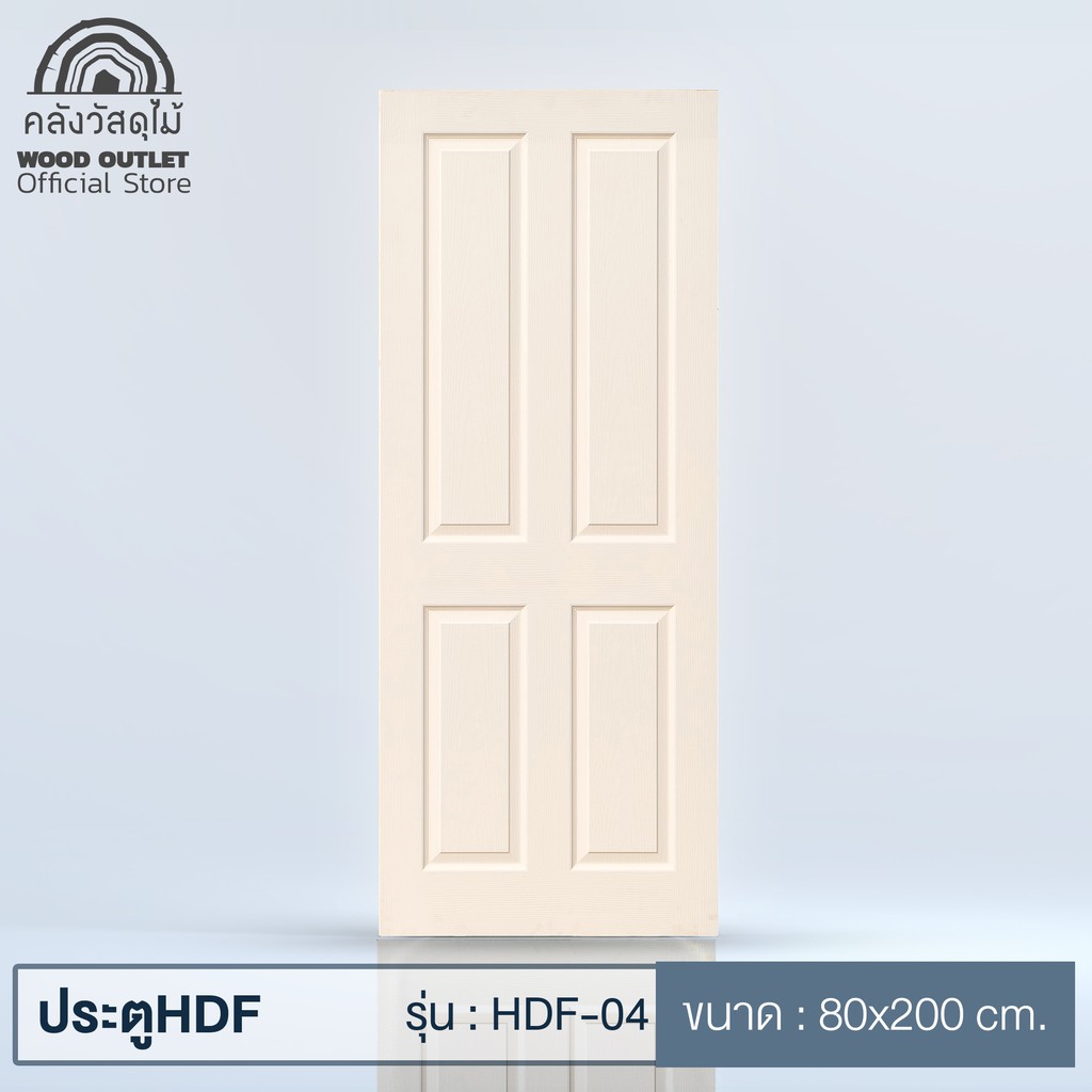 WOOD OUTLET (คลังวัสดุไม้) ประตู HDF-04 ขนาด 80x200cm ใช้สำหรับภายใน งานไม้อัด บานสำเร็จ พร้อมส่ง