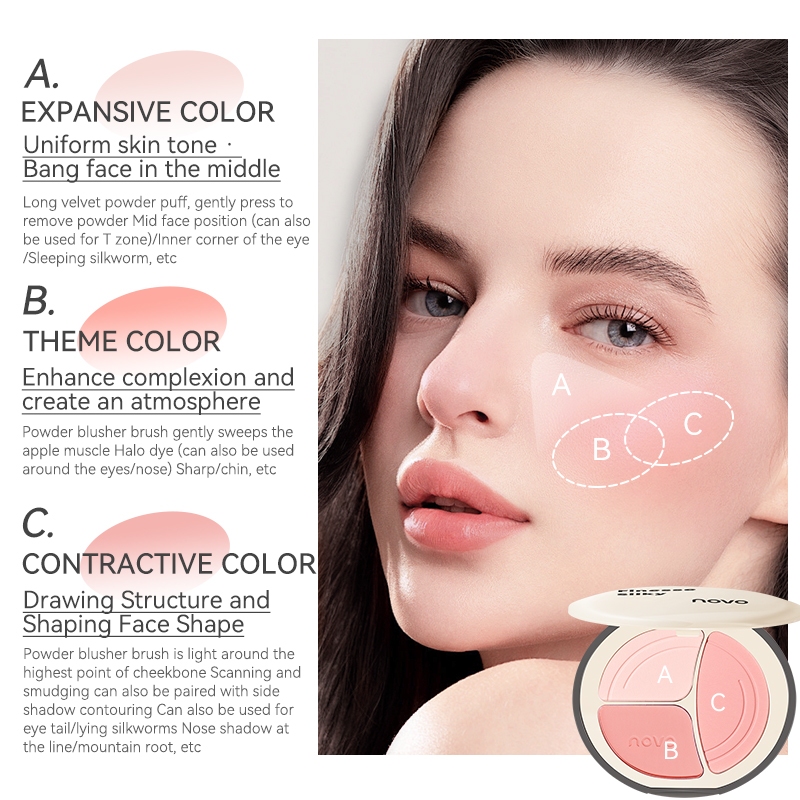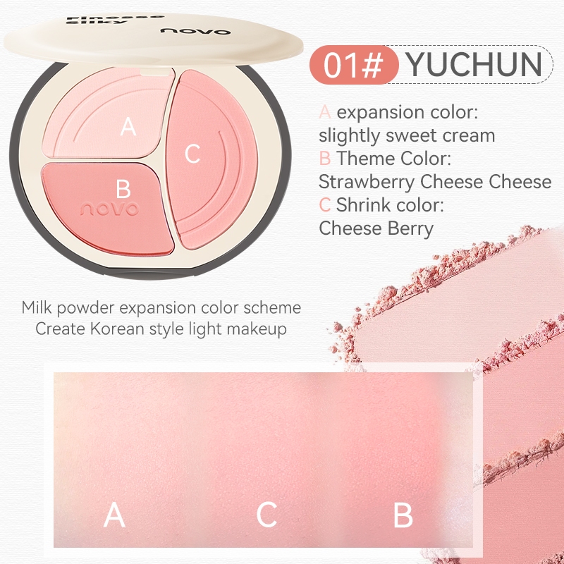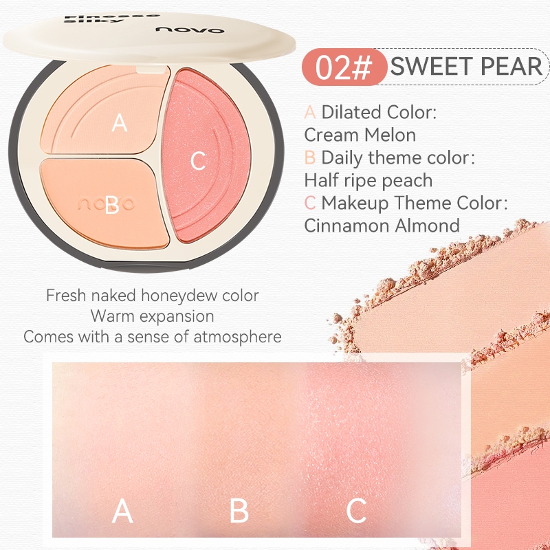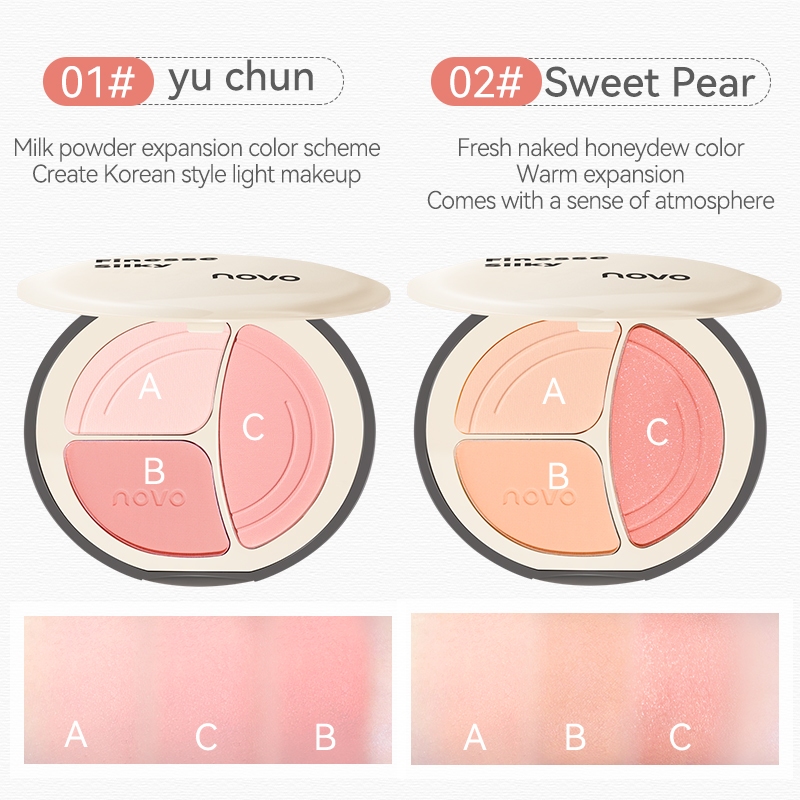 9018 (ใหม่/แท้) NOVO BLUSH พาเลทบลัชออน 3สี เนื้อแมตต์ ติดทน กันน้ำ