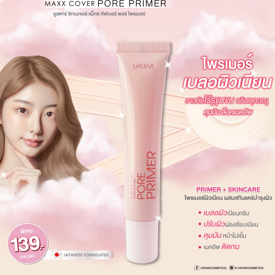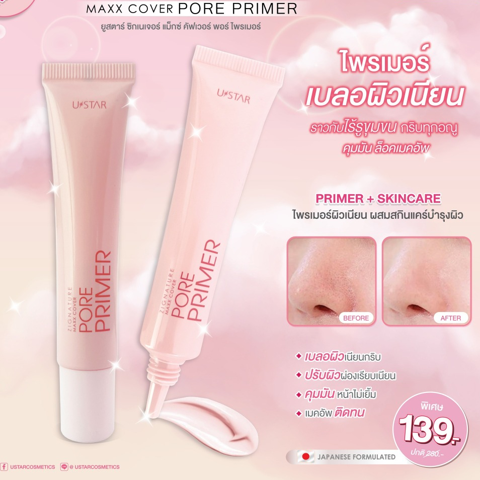กล่อง x3 ชิ้น USTAR ZICNATURE MAXX COVER PORE PRIMER ยูสตาร์ ซิกเนอเจอร์ แม็กซ์ คัฟเวอร์ พอร์ ไพรเมอร์