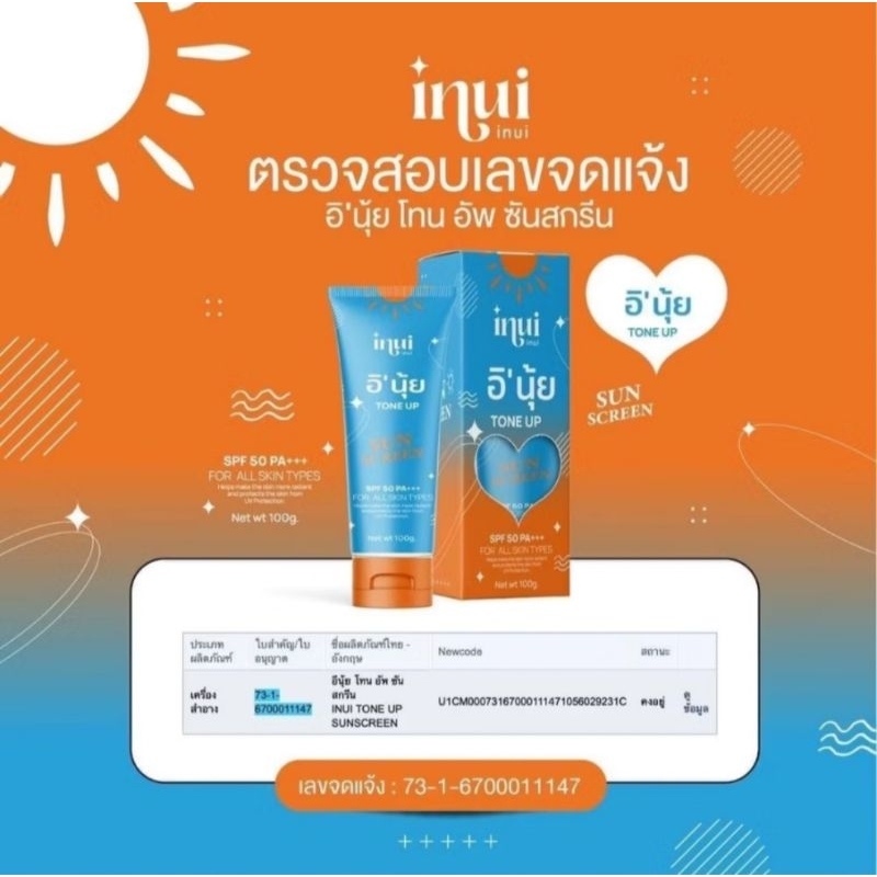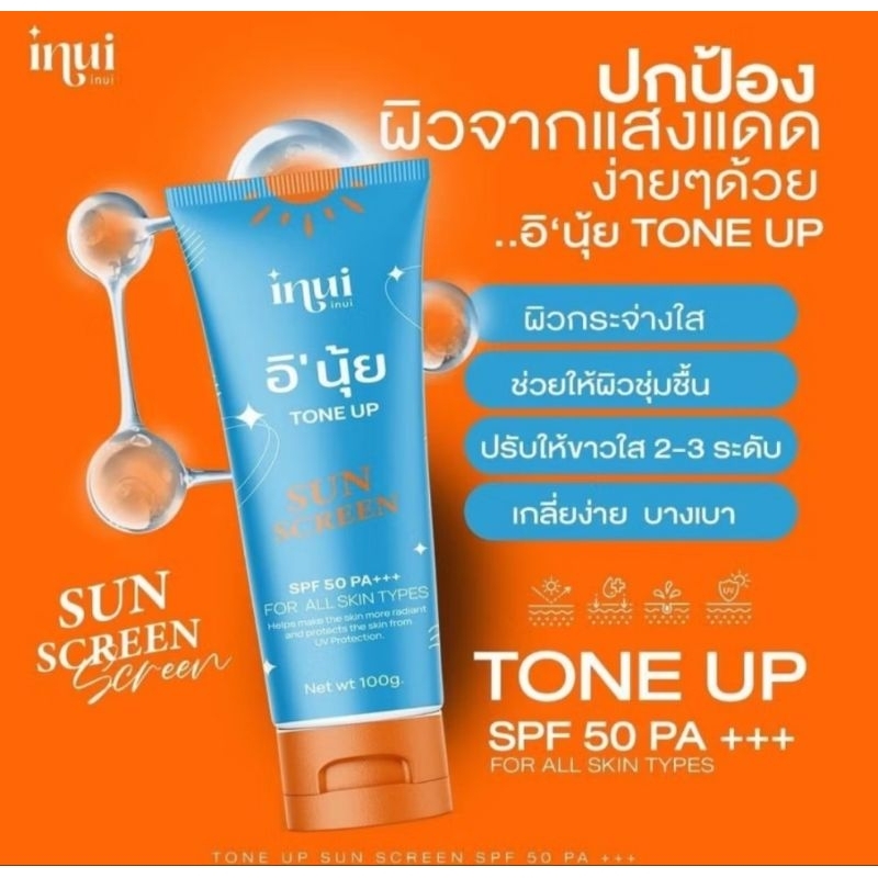 ส่งฟรี/มีไลฟ์ ลด50% ‼️กันแดดอิ'นุ้ย ปรับสภาพสีผิวได้ 1-2 ระดับ ผิวเนียนกลมกลืน โทนอัพ Inui Tone Up SPF 50PA++ขนาด 100 ml