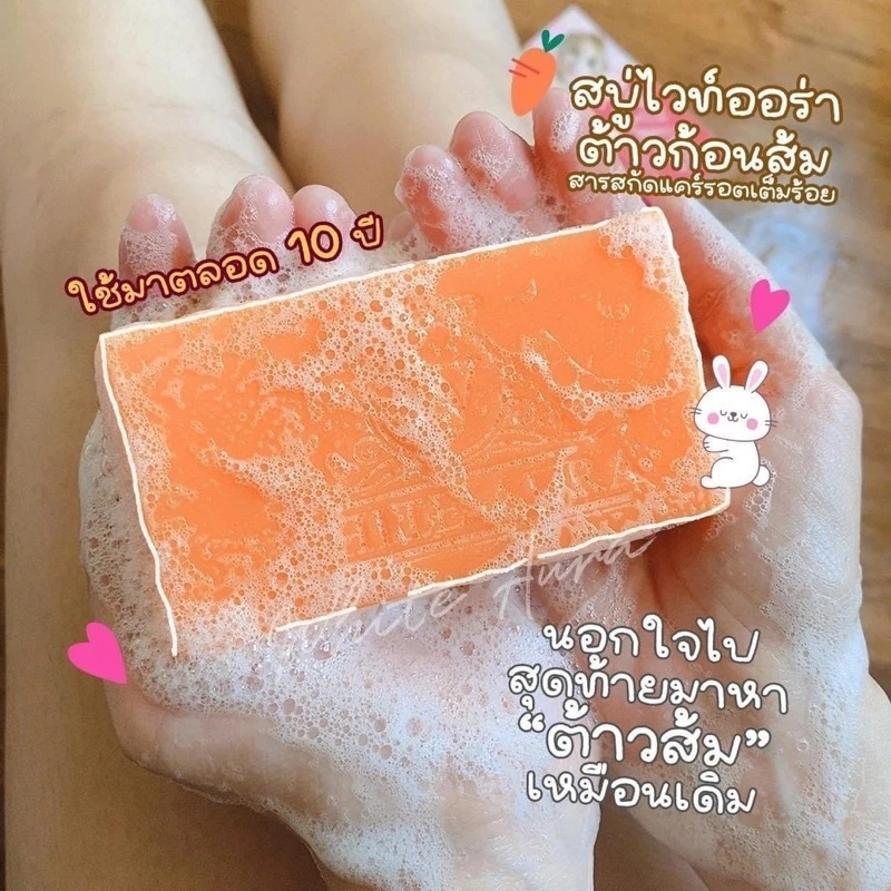 (1 ก้อน) สบู่ไวท์ออร่า White aura สบู่สครับนางงาม สบู่แครอท (160g.)