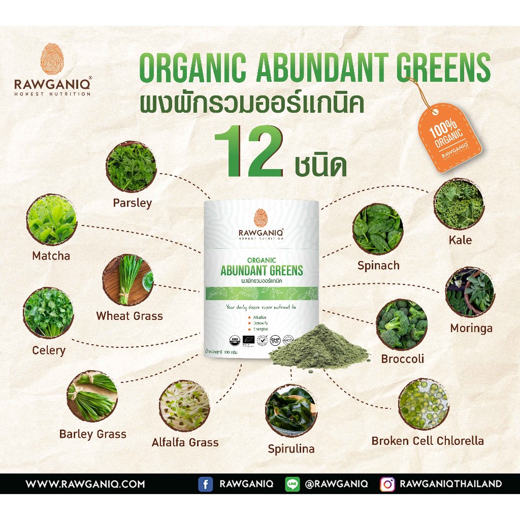 Rawganiq ผงผักรวมออร์แกนิค 12 ชนิด Organic Abundant Greens Powder (100g)