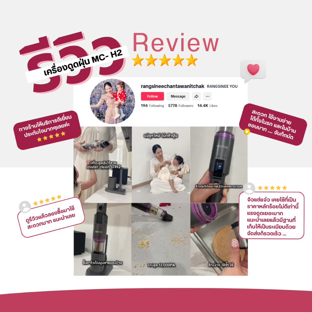 MC Vacuum รุ่น H2 เครื่องดูดฝุ่นในรถไร้สายหน้าจอ LED ดูดแรง 13000PA ฟรี ฟิลเตอร์ 1 ชิ้น และฐานตั้งเก็บ รับประกัน1ปี