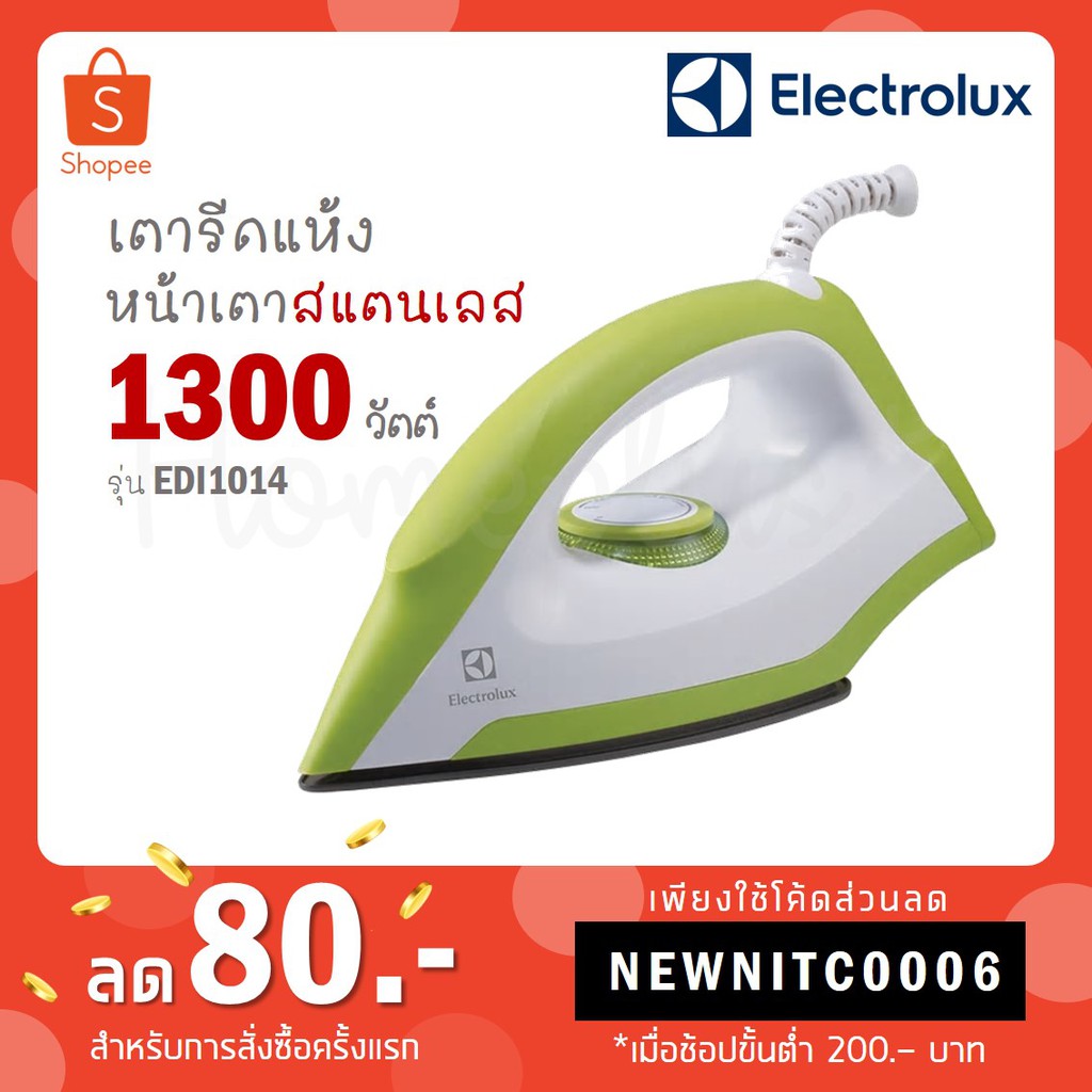 Electrolux เตารีดแห้ง หน้าเตาสแตนเลส กำลังไฟ 1,300 วัตต์ สีขาว-เขียว รุ่น EDI1014
