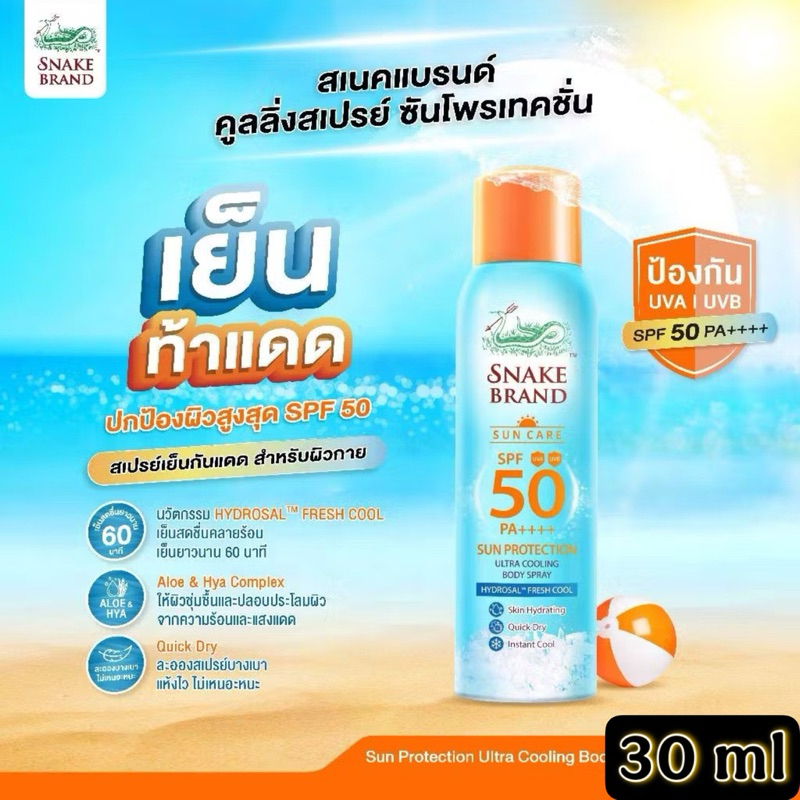 [ แพคคู่]Snake Brand ตรางู CooSPF 50 30ml x1+After Sun Body Mist 30ml x1 สเปรย์เย็นกันแดด หลังออกแดด ตรางู