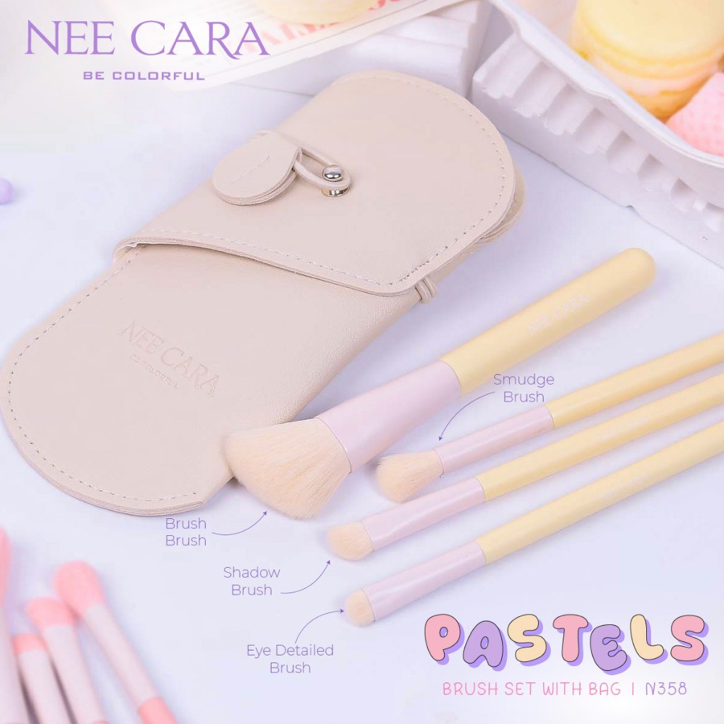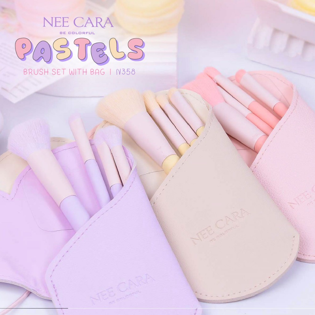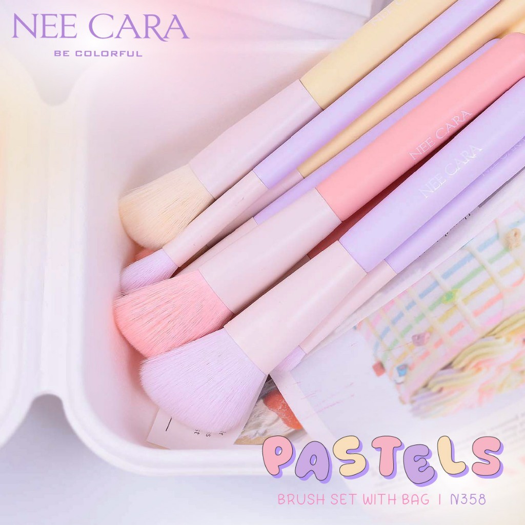 NEE CARA ชุดแปรงแต่งหน้าสีพาสเทล | N358 PASTELS BRUSH SET WITH BAG
