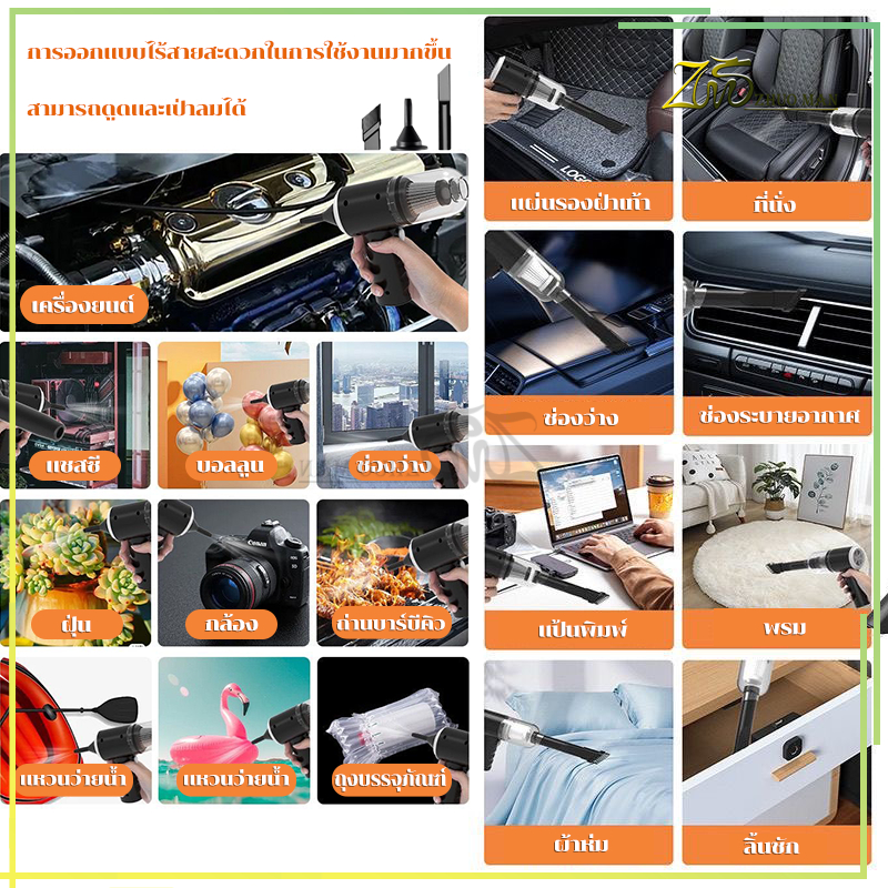 เครื่องดูดฝุ่นในรถ ไร้สายรถดูดฝุ่น ดูดฝุ่นแบบพกพา สำหรับใช้ขจัดฝุ่นละอองในรถยนต์และห้องโดยสาร ภายในบ้าน เตียง