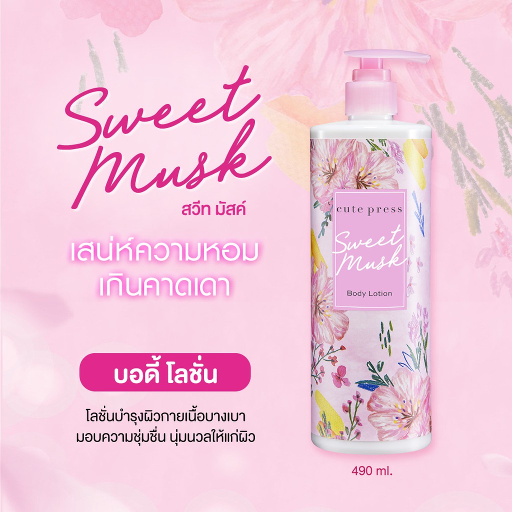 cute press sweet musk body lotion คิวท์เพรส สวีท มัสค์ บอดี้ โลชั่น 490 ml.