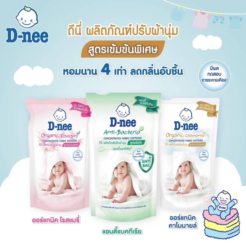 D-nee ดีนี่ ผลิตภัณฑ์ปรับผ้านุ่ม สูตรเข้มข้นพิเศษ ออร์แกนิค โรสแมรี่และคาโมมายค์(ระบุสูตร) ขนาด 500 มล แพ็ค 1 ถุง