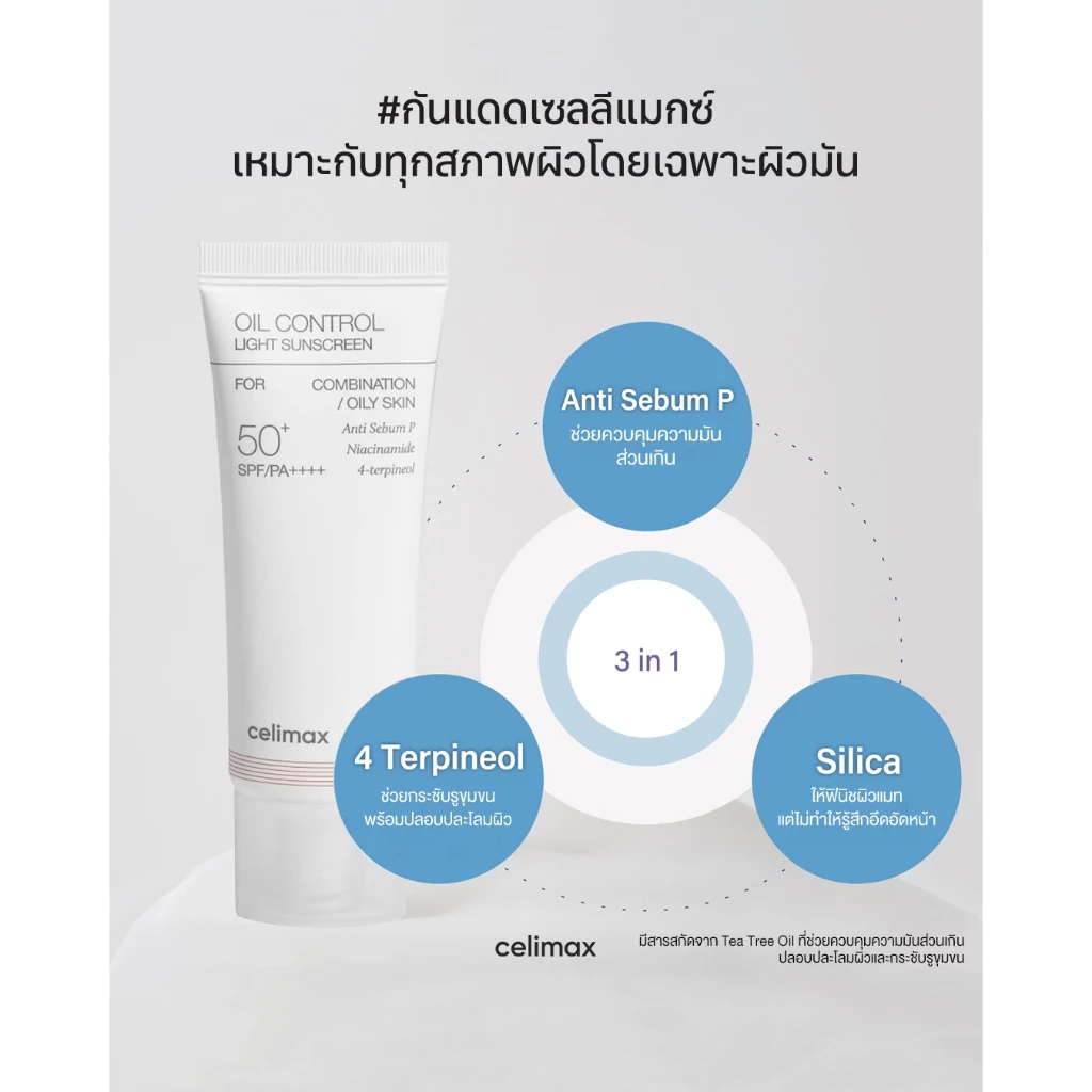 [100% แท้ / พร้อมส่ง] Celimax Oil Control Light Sunscreen 40ml | กันแดดคุมมัน กันน้ำกันเหงื่อ ฟินิชผิวแมท บางเบา