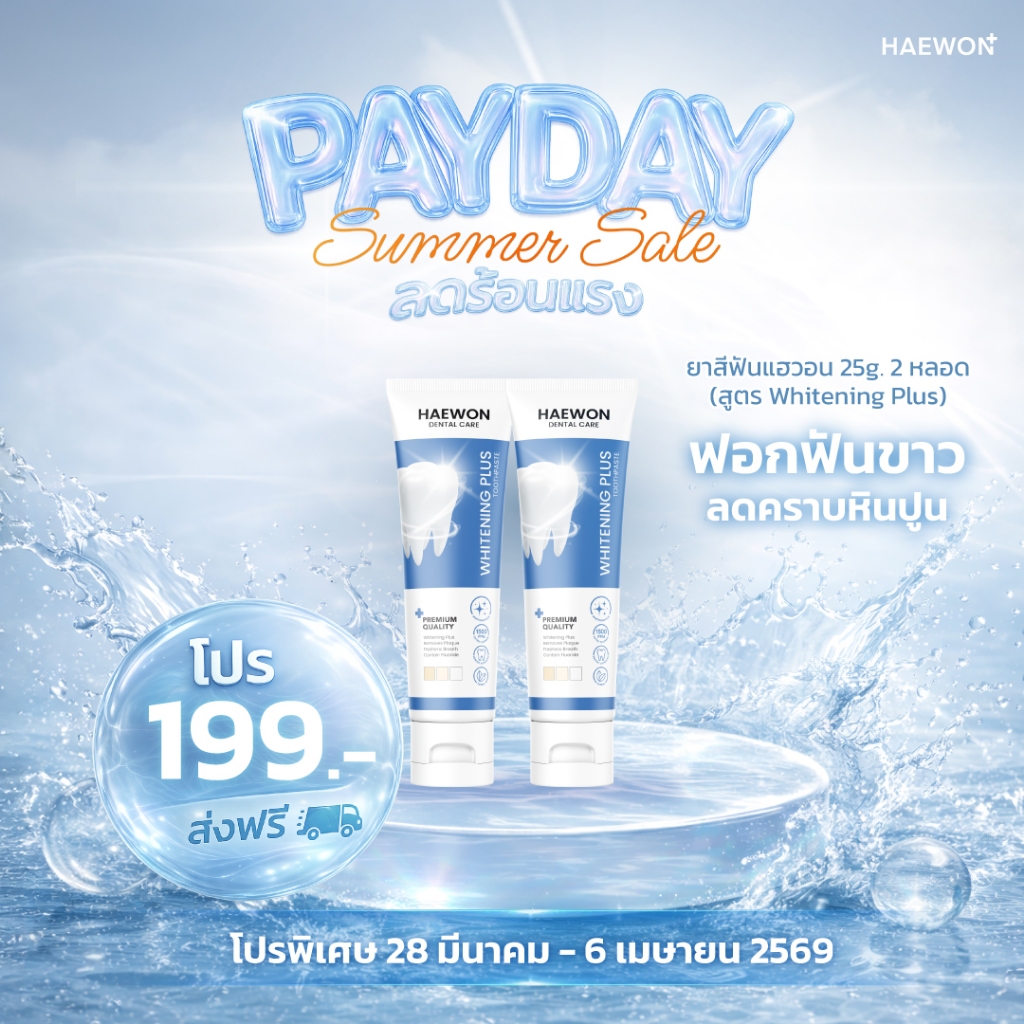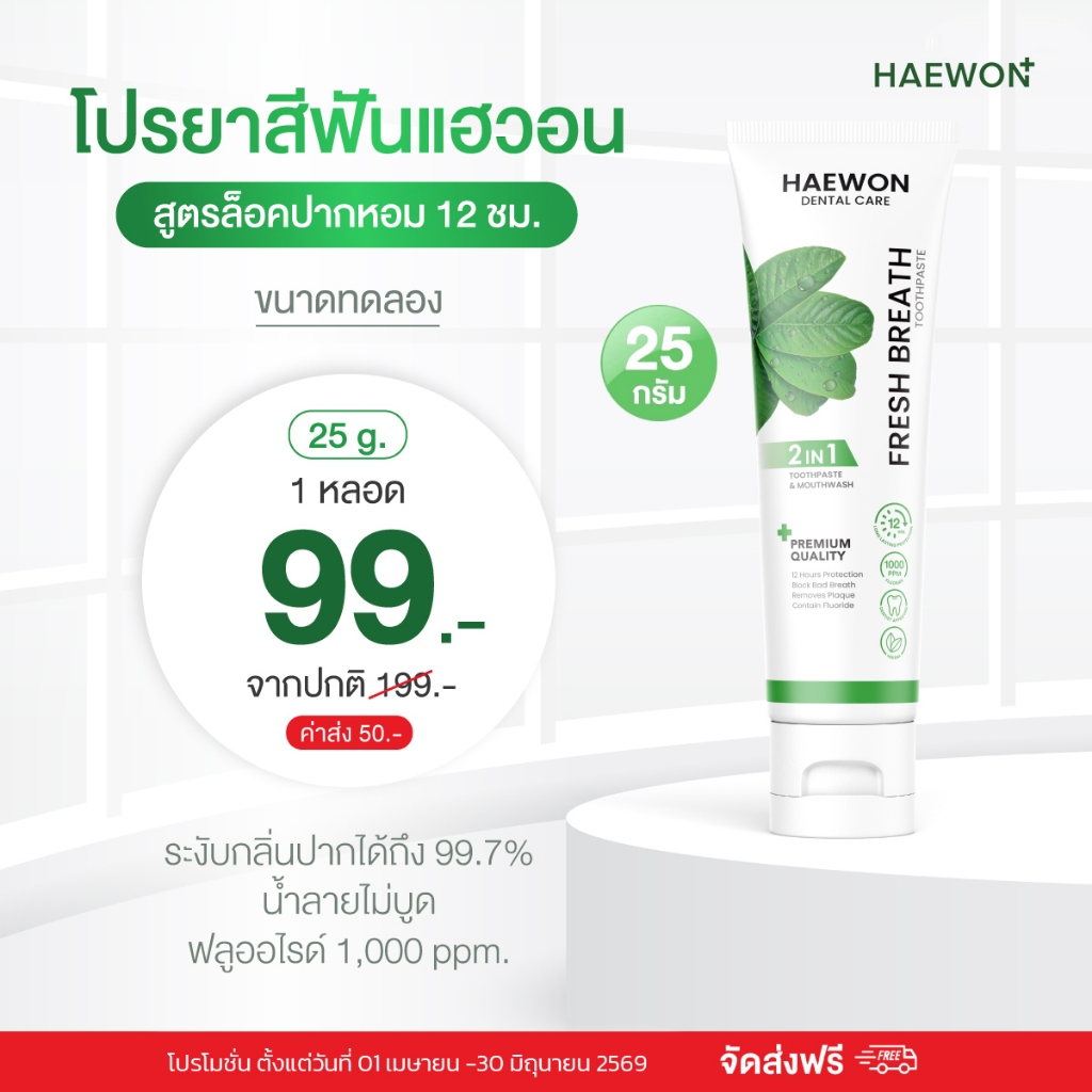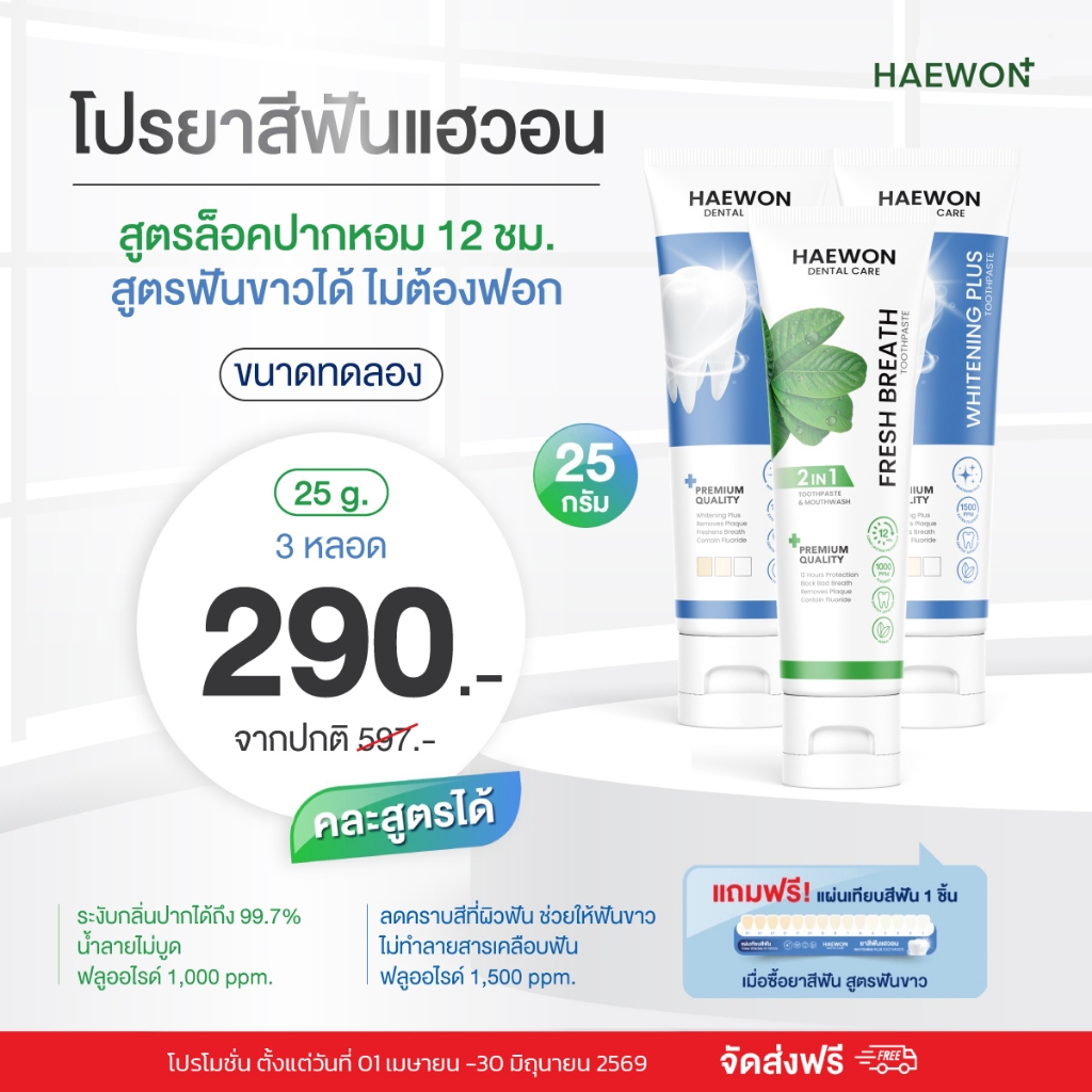 Haewon Whitening Plus ยาสีฟันแฮวอน สูตรฟันขาวได้ ไม่ต้องฟอก ไม่ทำลายสารเคลือบ ฟัน ขนาด 25g. ผสมน้ำยาบ้วนปาก