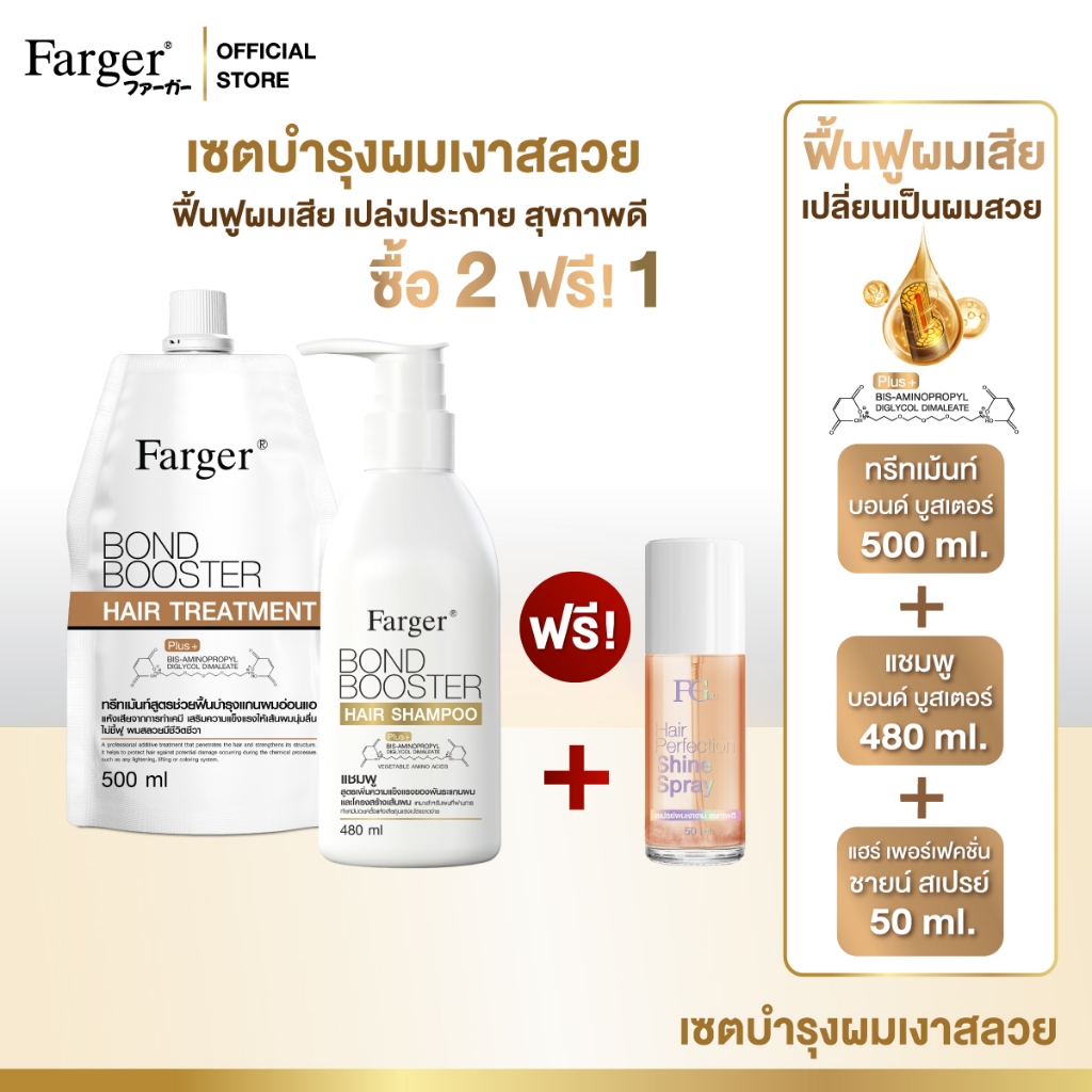 [2ฟรี1] Farger Bond Booster shampoo + Treatment ฟรี สเปรย์บำรุงผมเงา บำรุงผม กู้ผมเสีย ซึมง่าย ไม่เหนียว